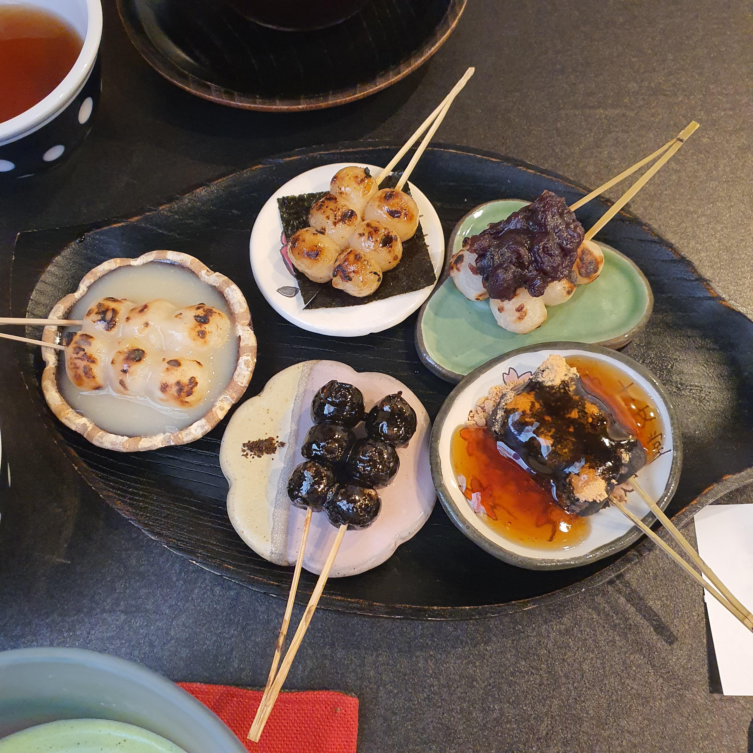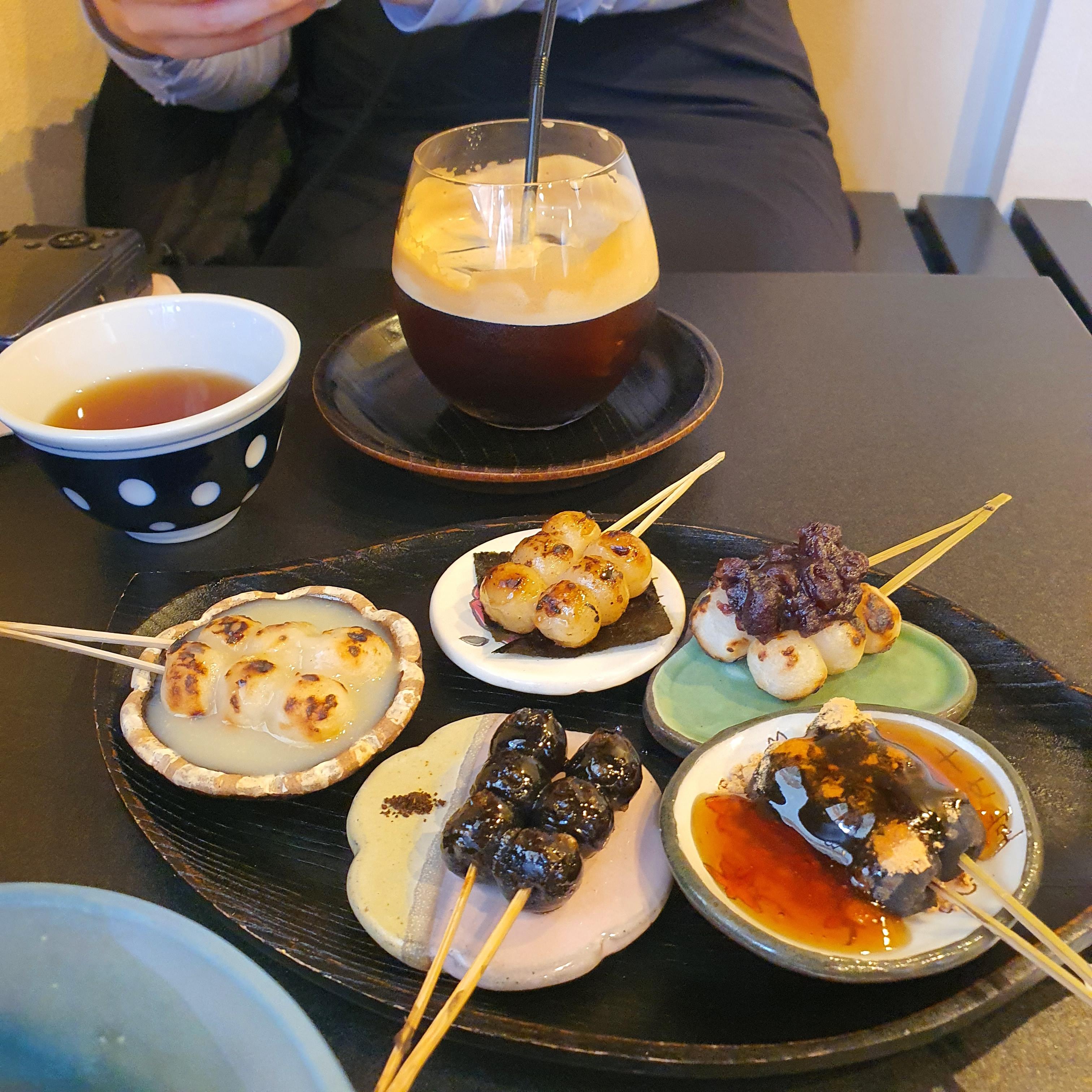 교토 5층 목탑 도지 인근 디저트 가게 추천-매우 특색 있는 당고 디저트, 말차와 커피도 맛있음, 쥬몬도 jumondo 교토