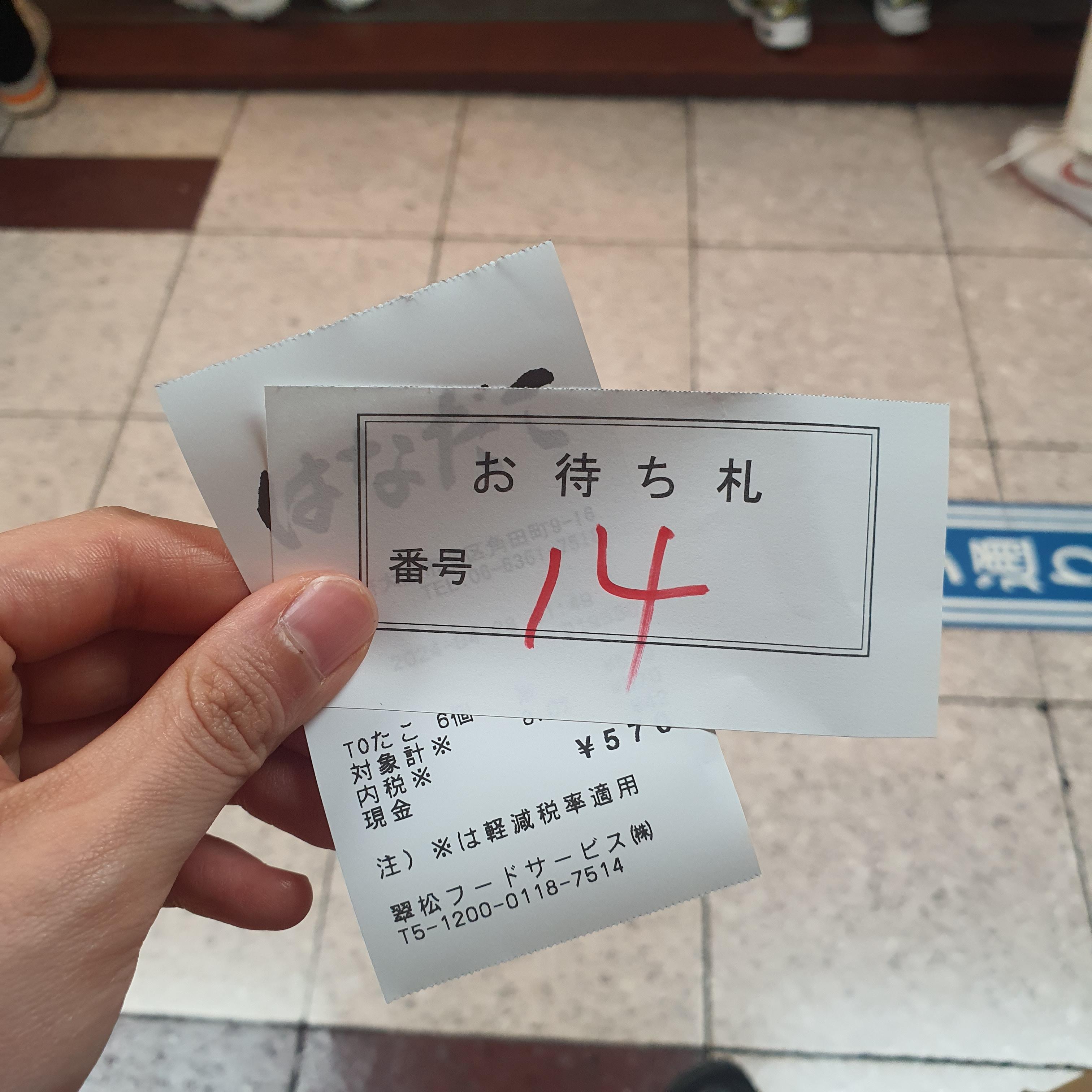 영수증과 함께 대기번호표를 줍니다