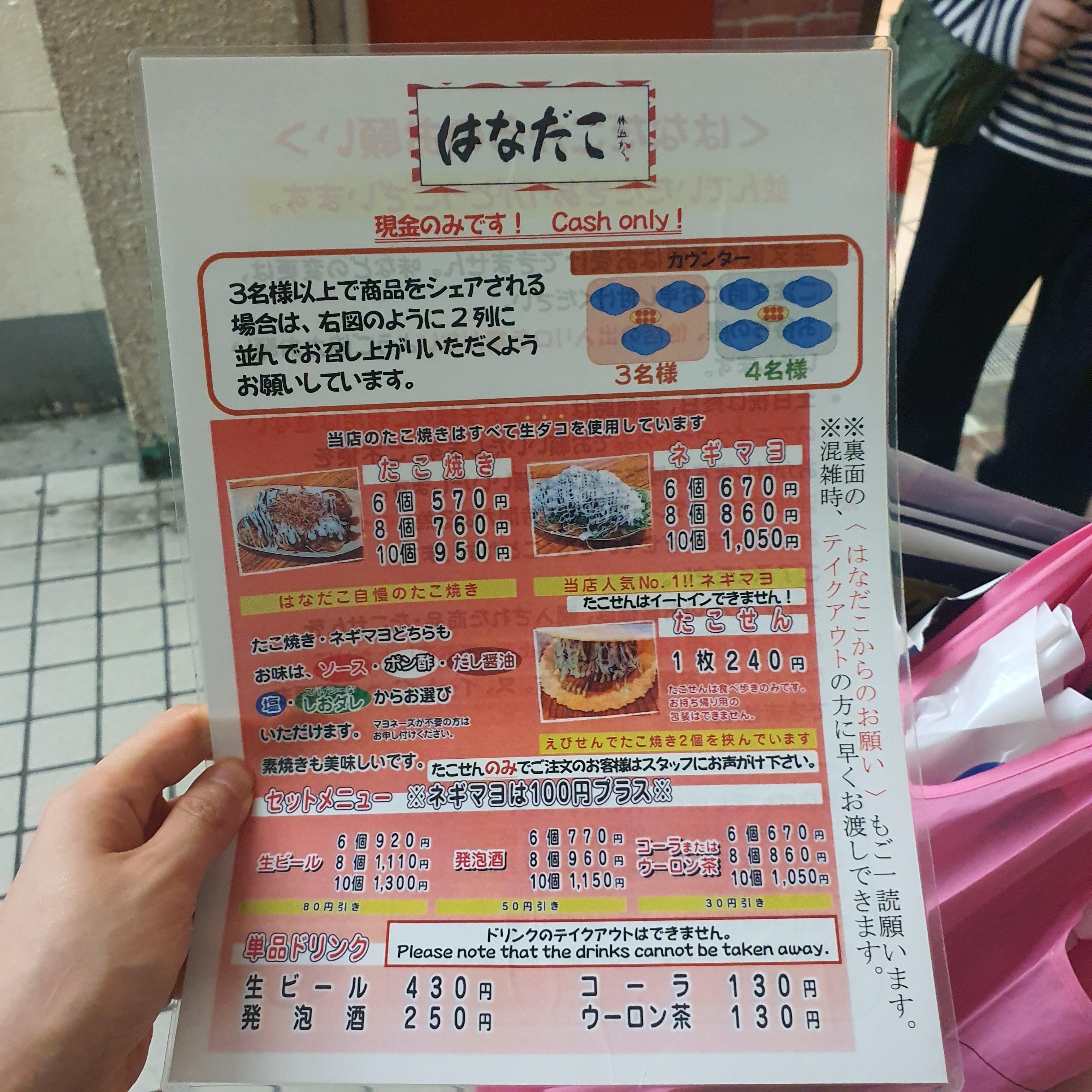 오사카 타코야끼 맛집 신한큐호텔 인근 하나다코, 주문방법 가격 메뉴추천, 포장지 문구 뜻