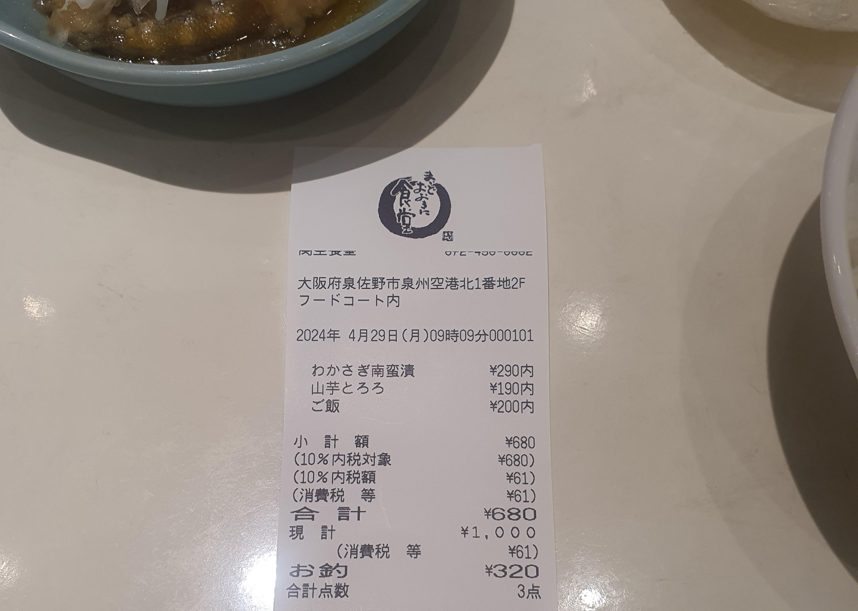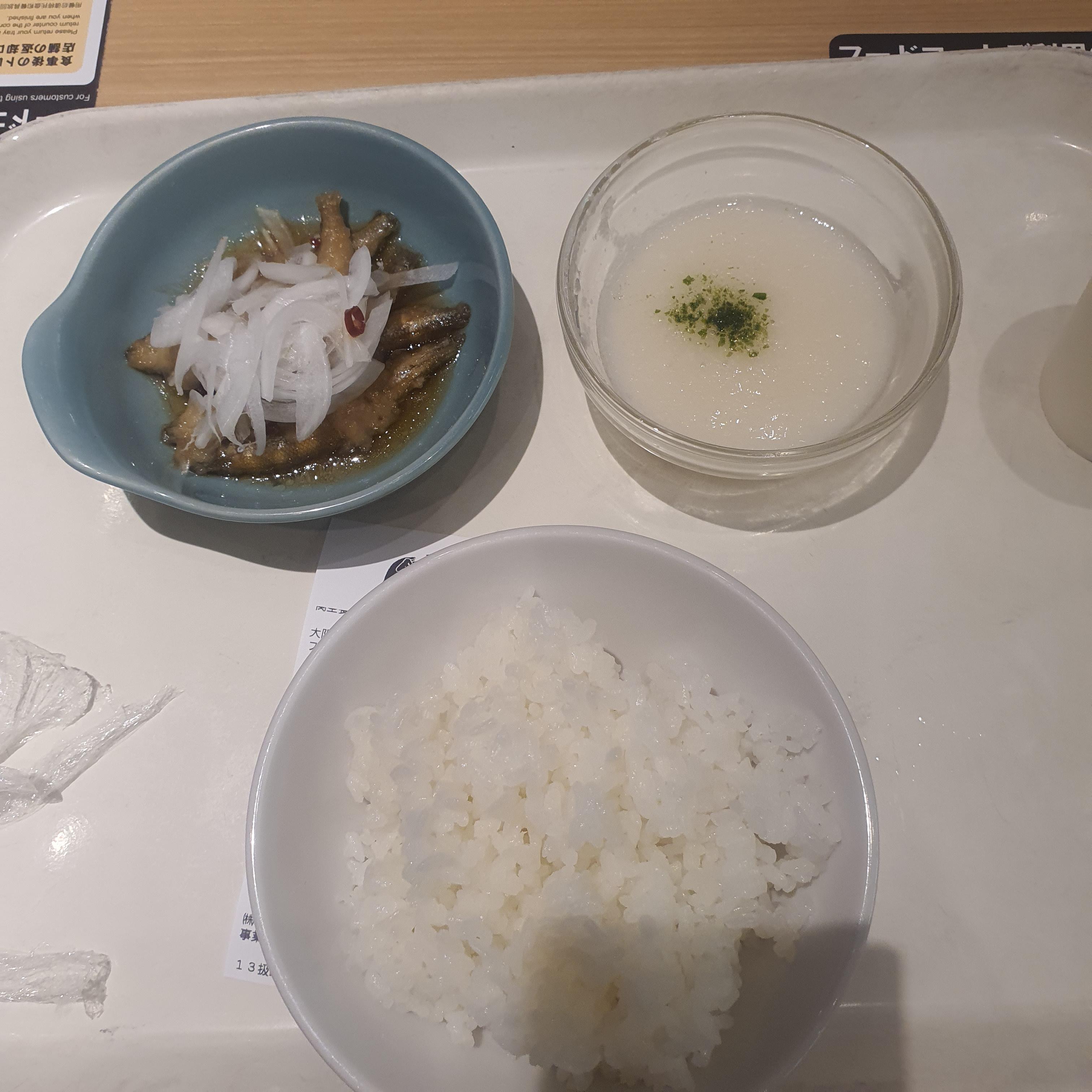 저는 쌀밥, 마를 갈아 내린 것, 빙어 조림(인듯)을 골라 680엔을 지불했습니다