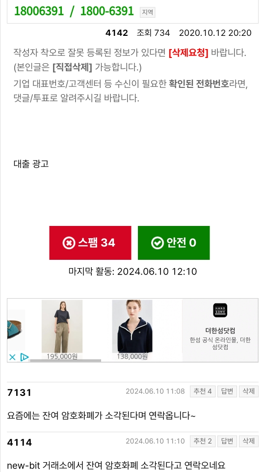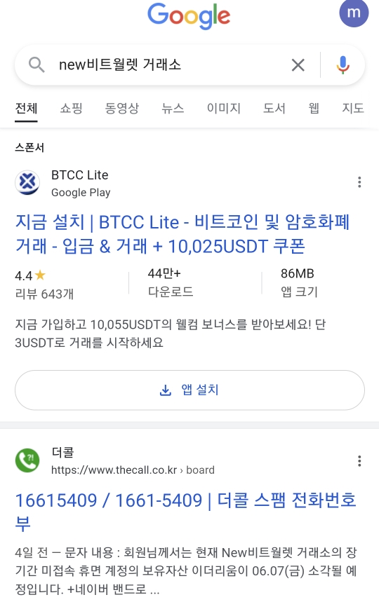 3. 제일 중요한 건 스팸전화, 사기전화 정보를 공유하는 '더콜' 사이트에 저 new-bit 스미싱 문자 번호가 올라와있다는 점