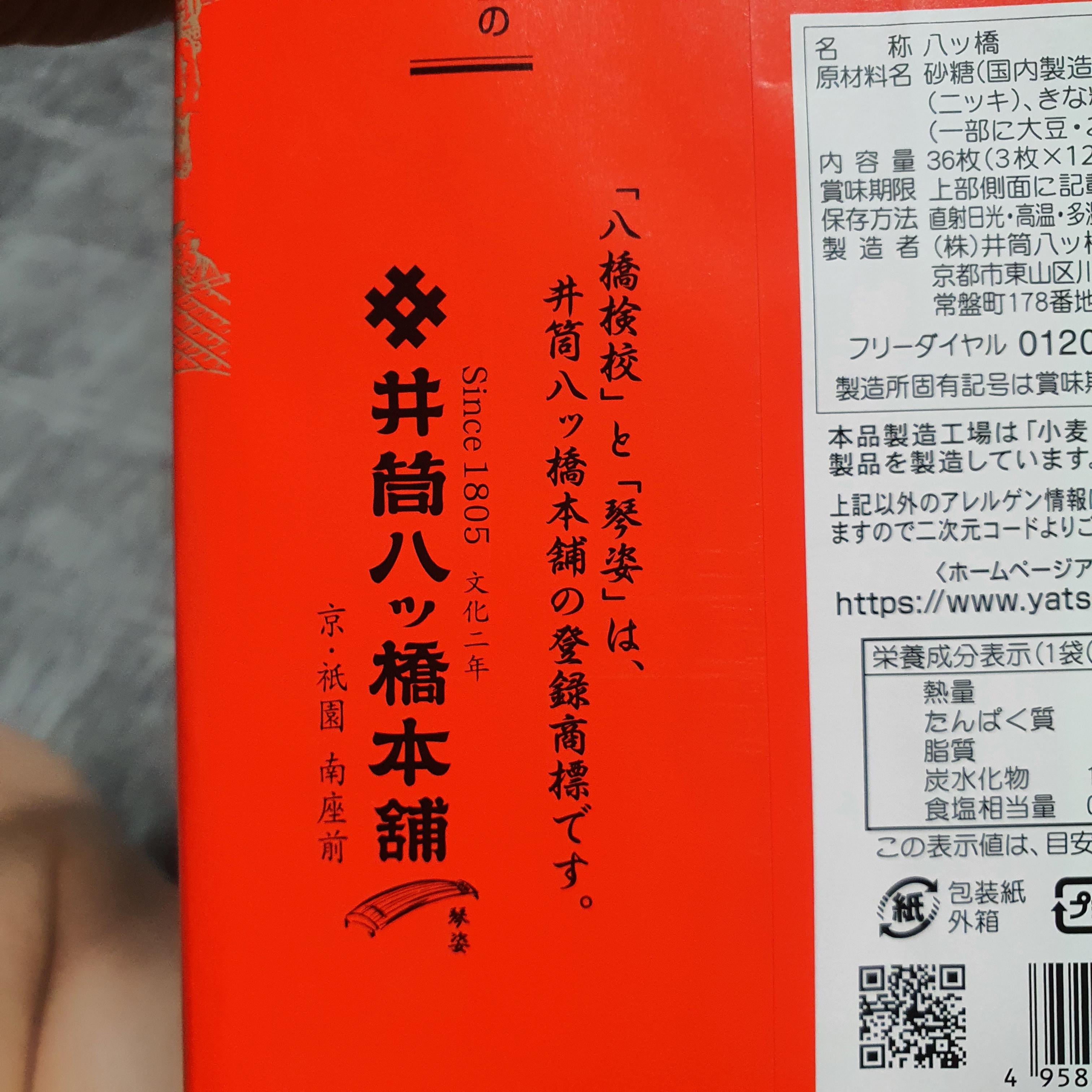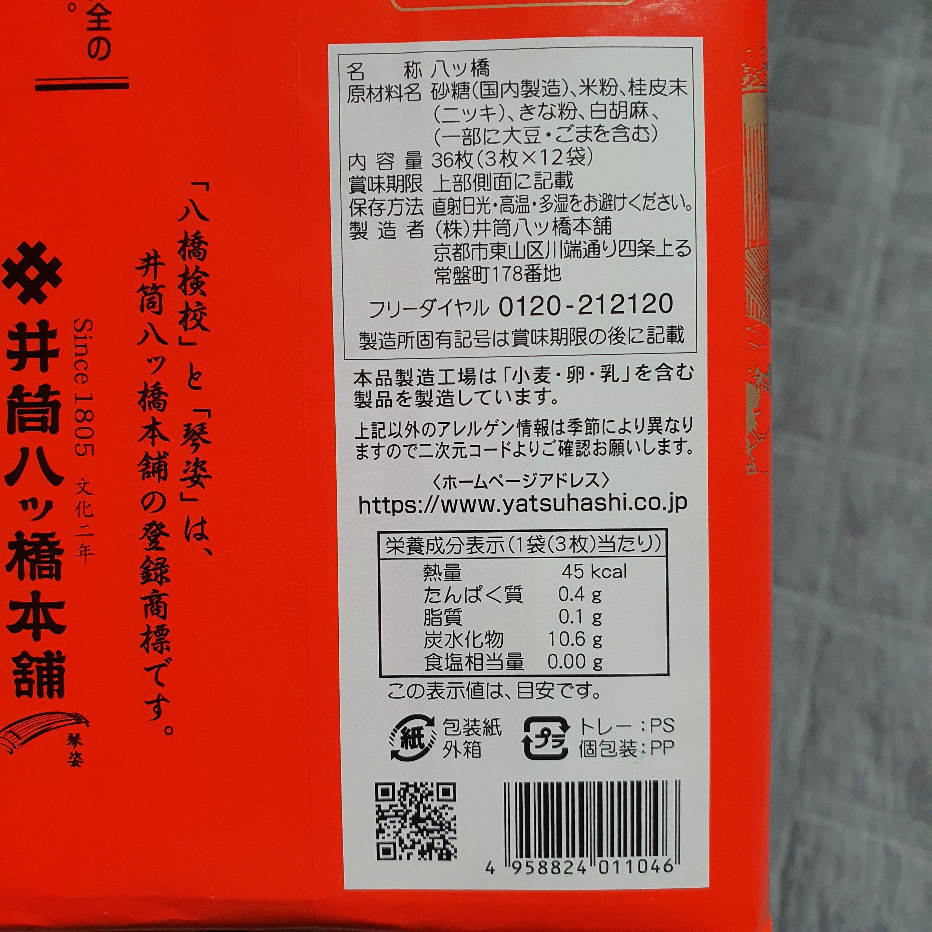 빨간 포장지로 된 얏츠하시(야츠하시)는 교토지역의 전통 과자입니다