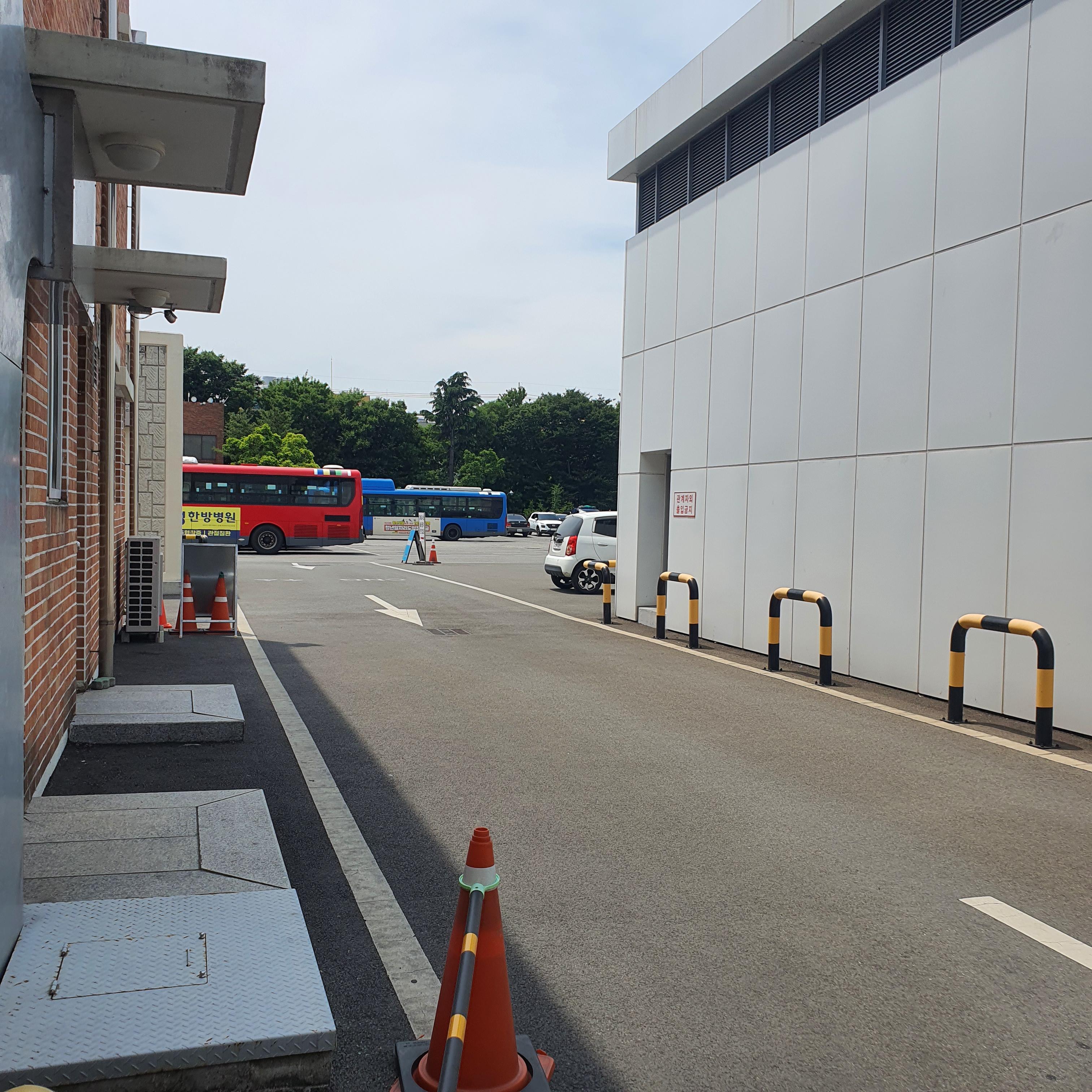 정면에서 건물 좌측으로 쭉 돌아 들어가서, 건물 뒷편에서부터 차례로 줄을 서야 하는 시스템입니다