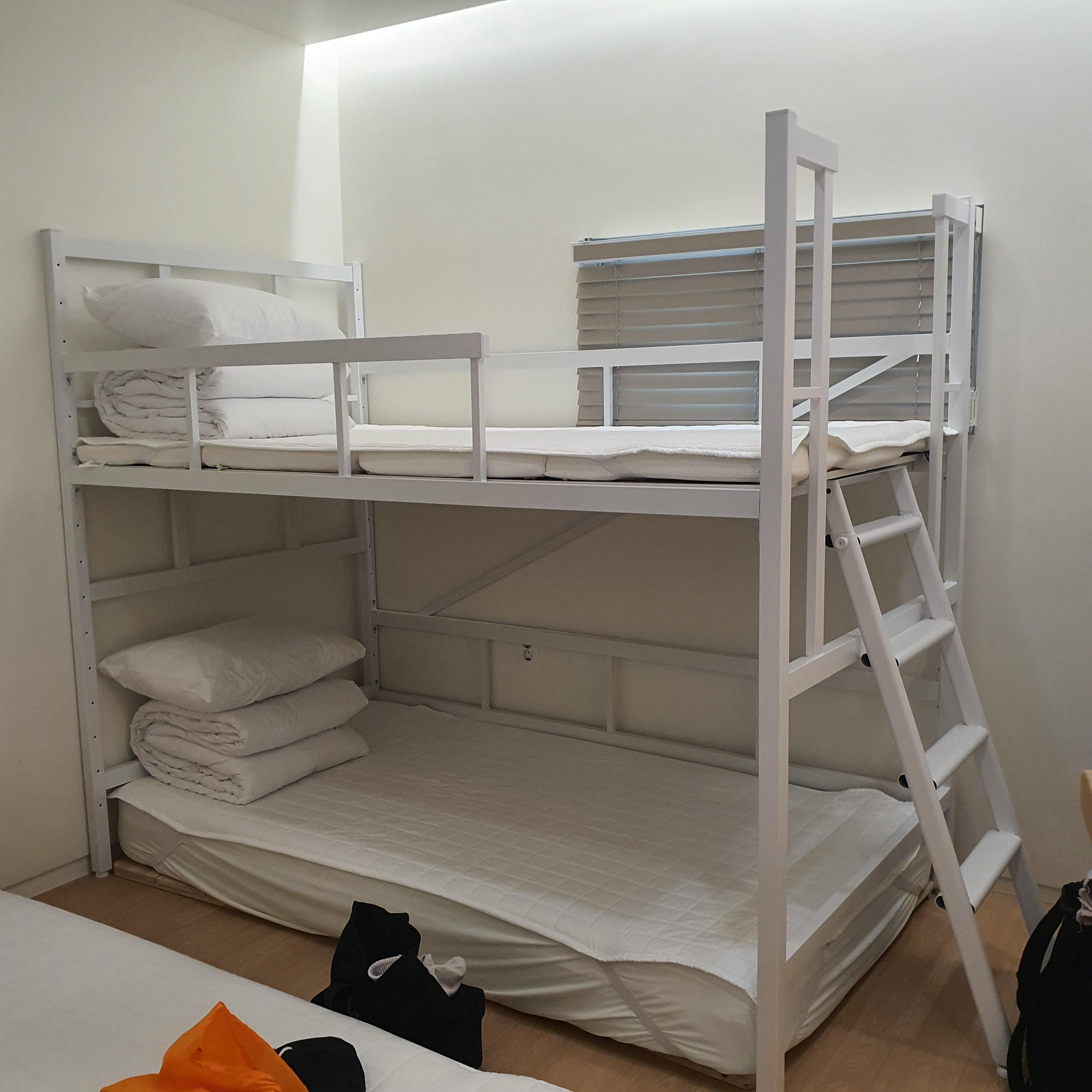 이층침대 하나와 단층침대 하나가 있어 3명이 투숙할 수 있습니다