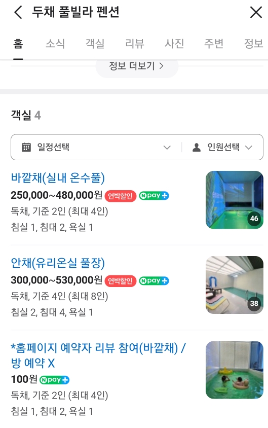 저희는 두채 풀빌라 펜션 직영 홈페이지에서 예약을 했습니다