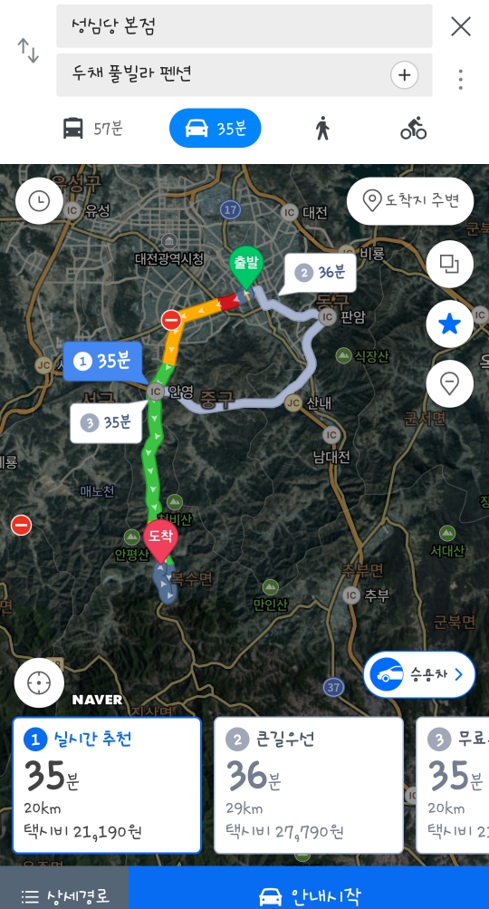 성심당 본점 등이 있는 대전 시내에서 차로 30분 정도 걸립니다