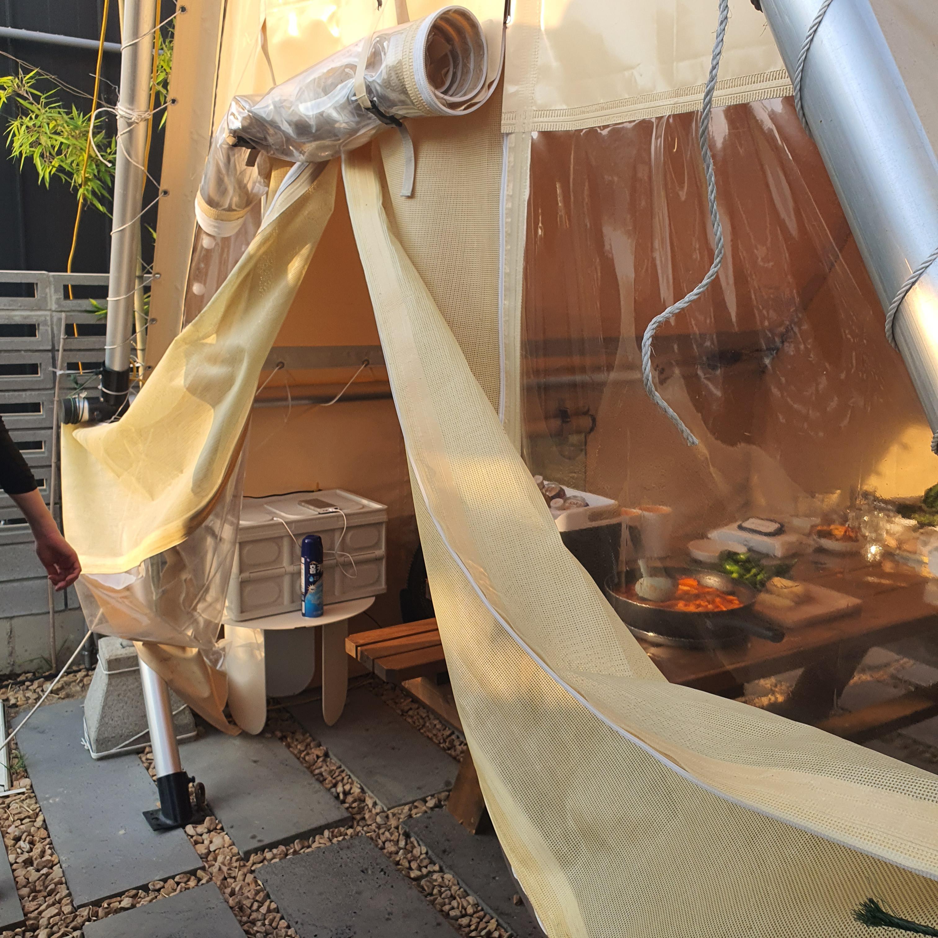 식사공간은 천막이 있어서 밤에는 닫아놓고 드시면 됩니다