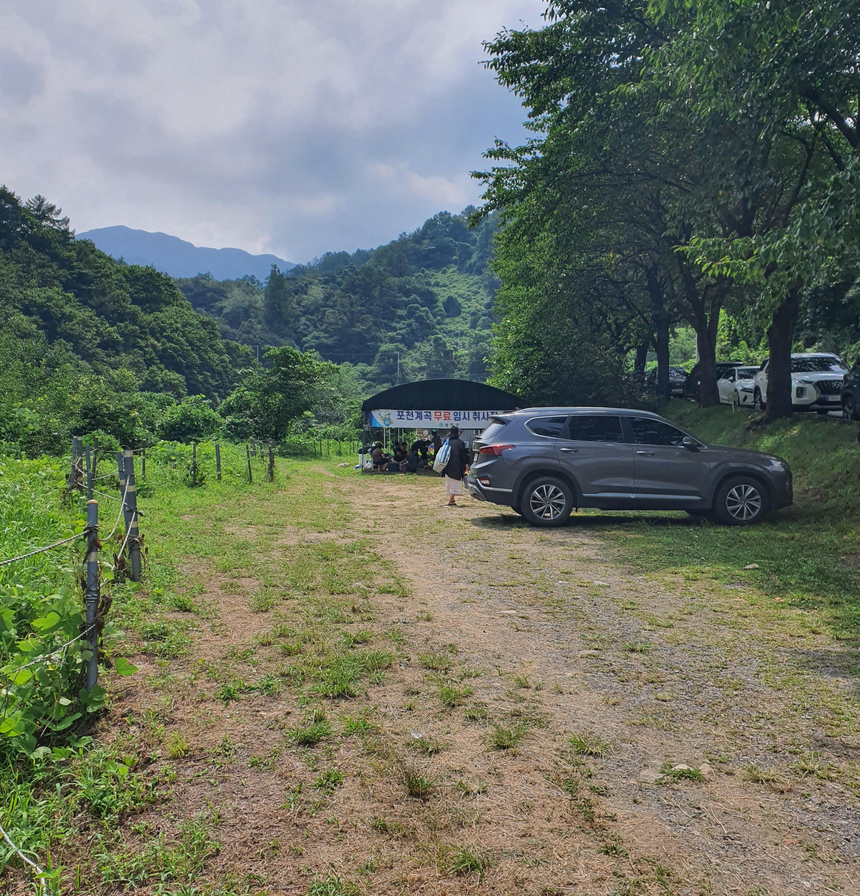 도로 큰길에 커다랗게 '포천계곡'이라 쓰인 간판이 보이는데요