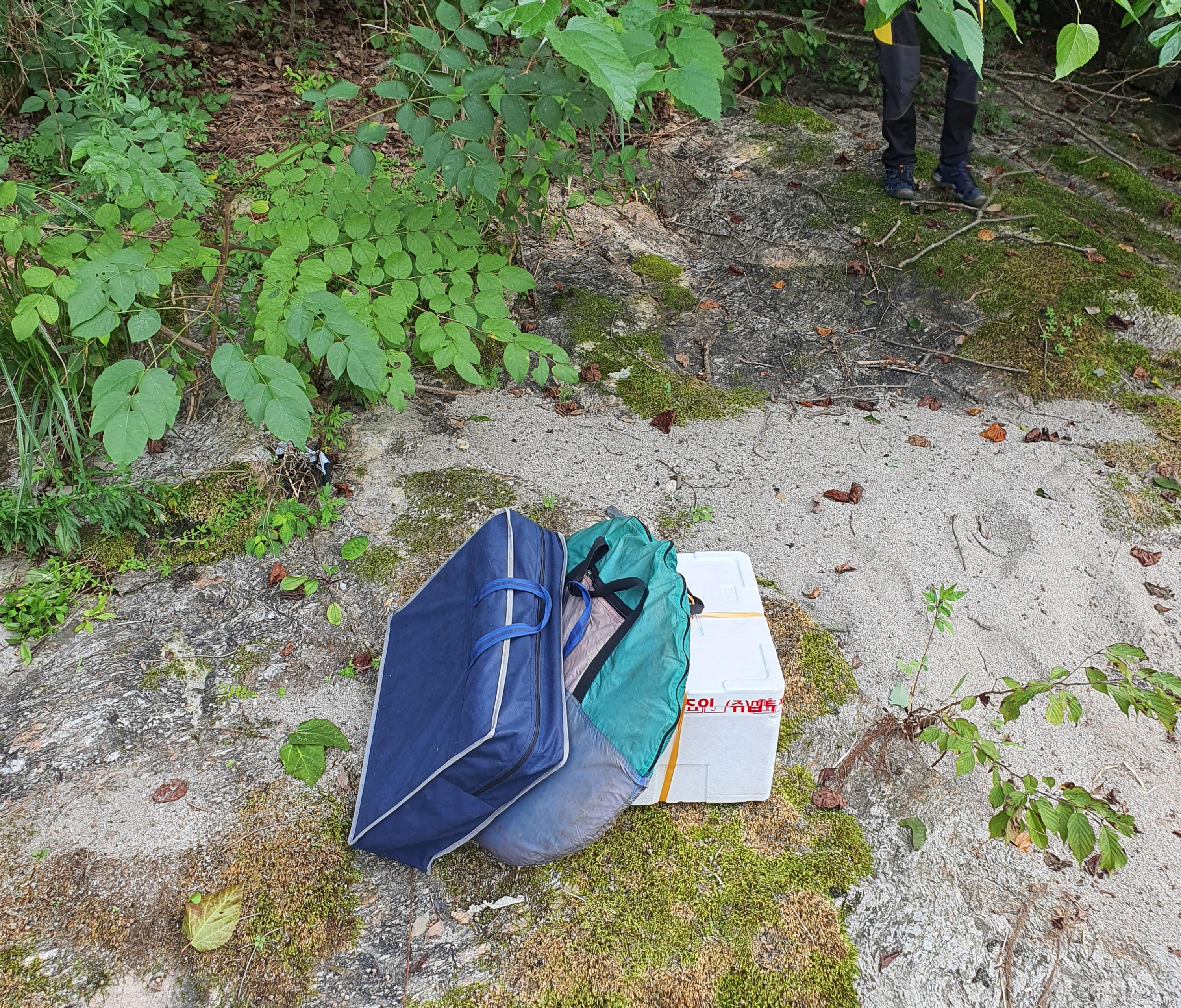 이렇게 텐트나 돗자리를 깔고 휴식하는 것만 가능합니다