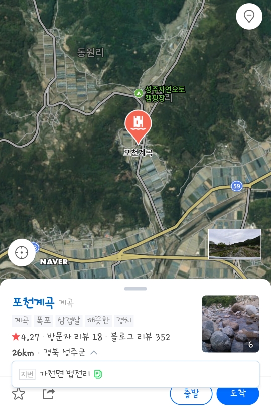 포천계곡 방문 시 네비게이션에 포천계곡을 검색해 가천면 법전리로 가시면 됩니다