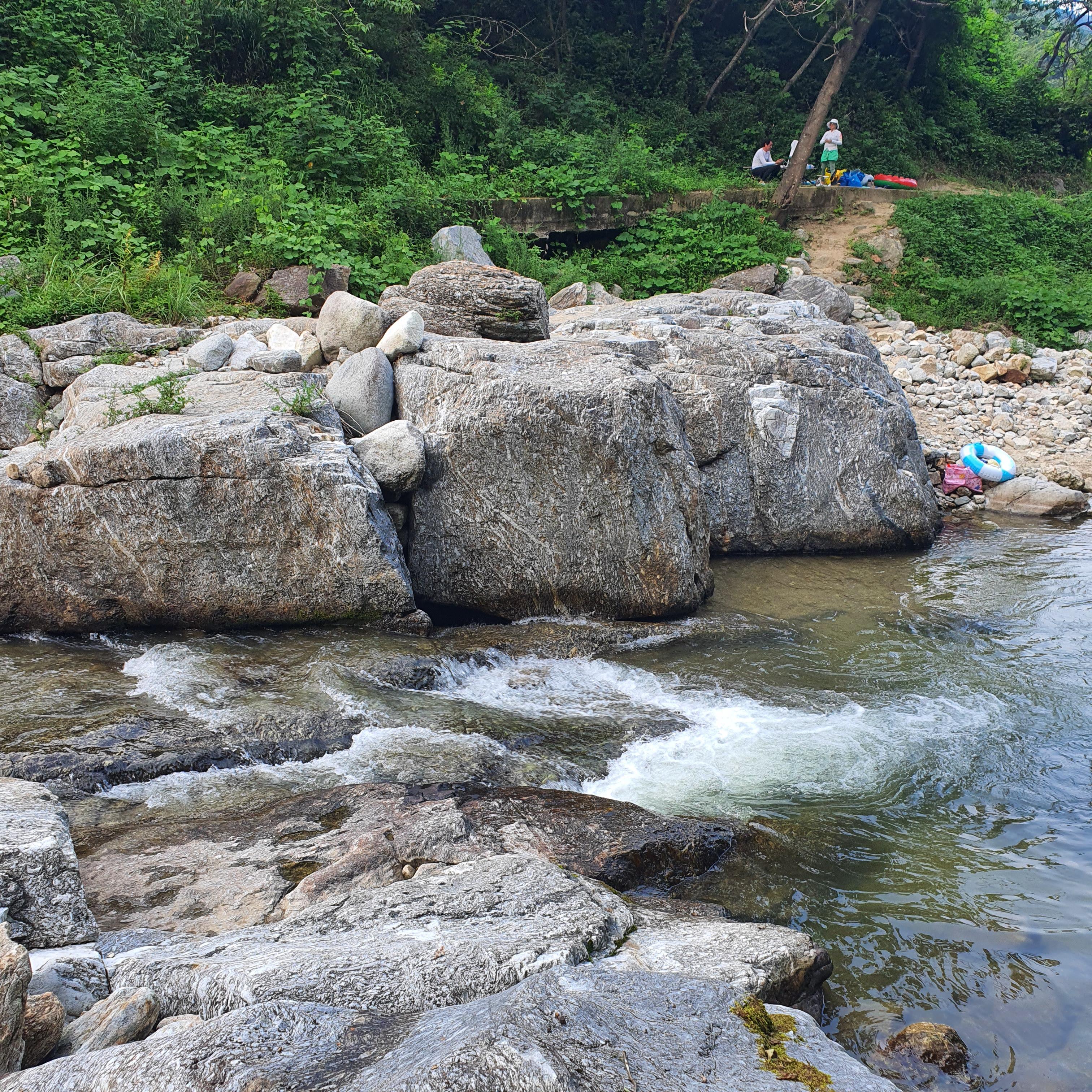 대구 근교 물놀이하기 좋은 곳으로 추천하는 성주 포천계곡의 수량은 구간마다 제각각입니다