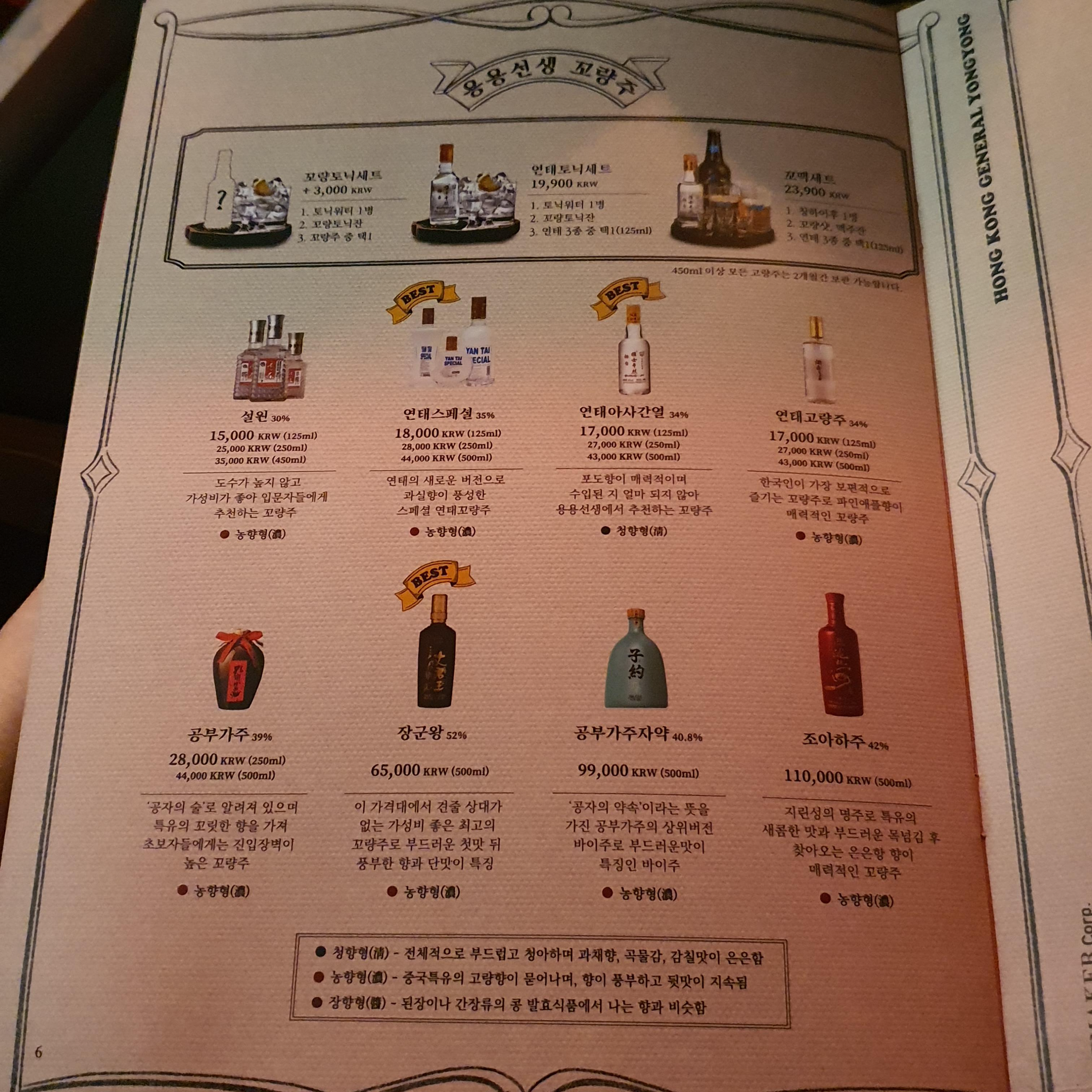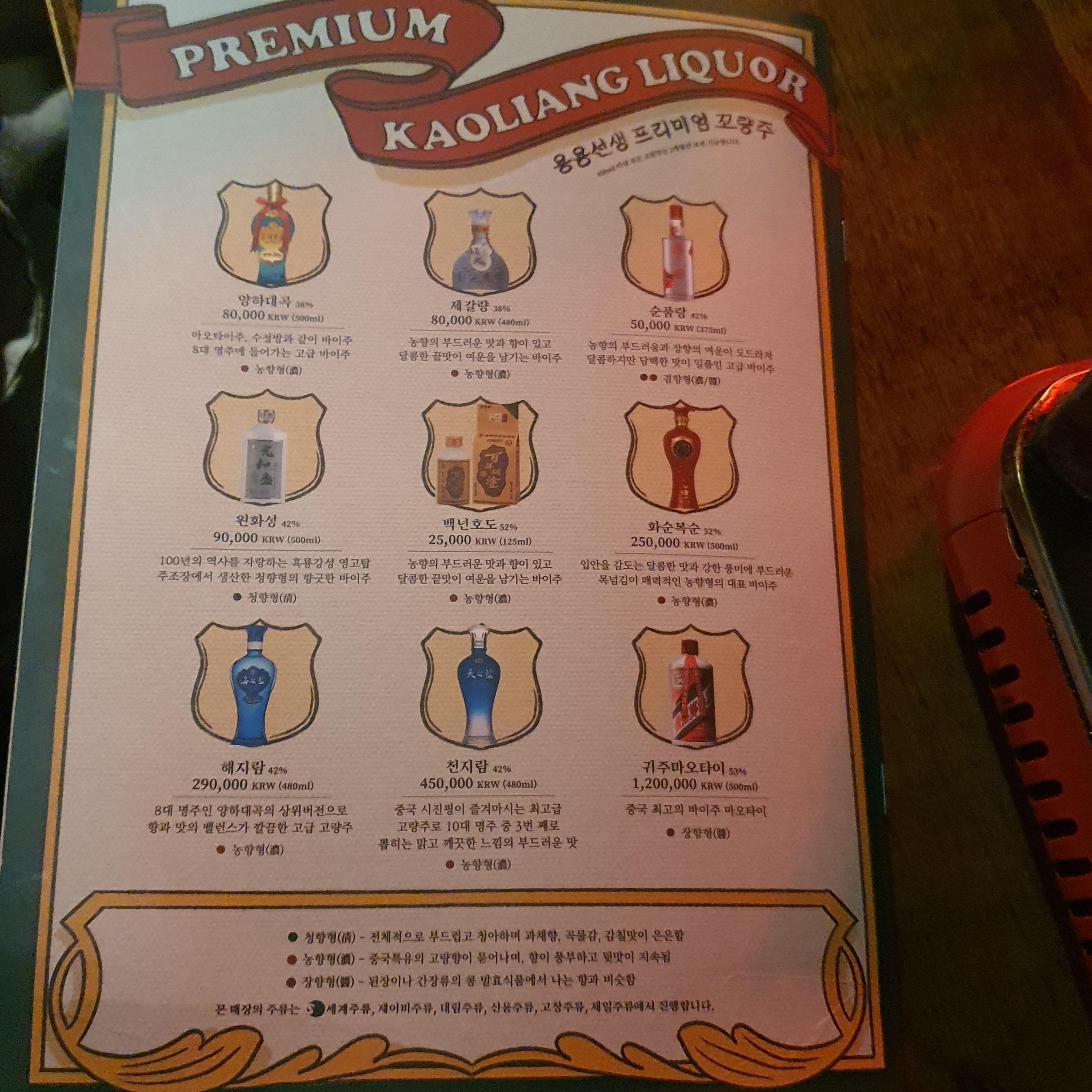 특히 고량주 등 술 종류가 매우 다양해서 골라 마시는 재미가 있습니다
