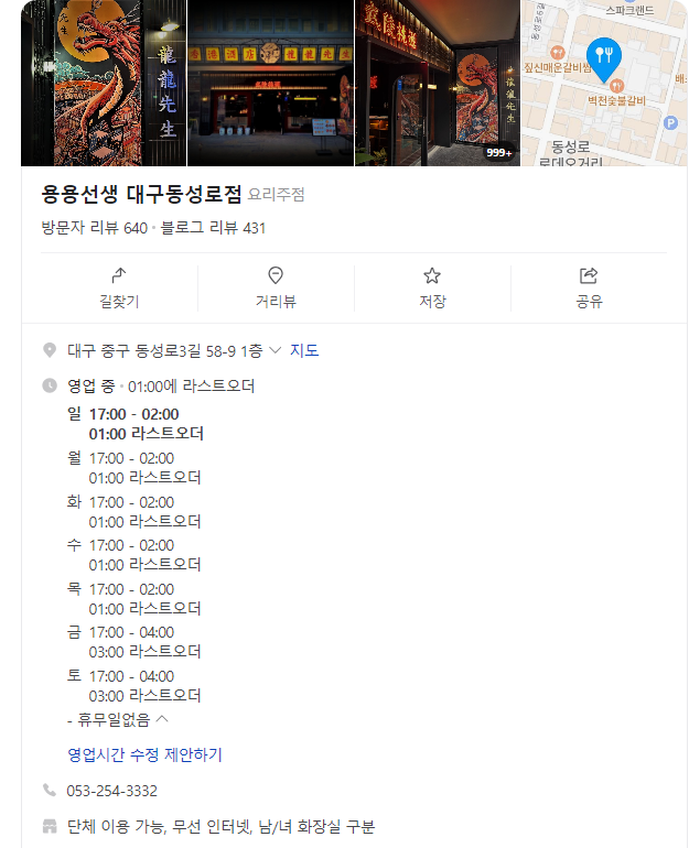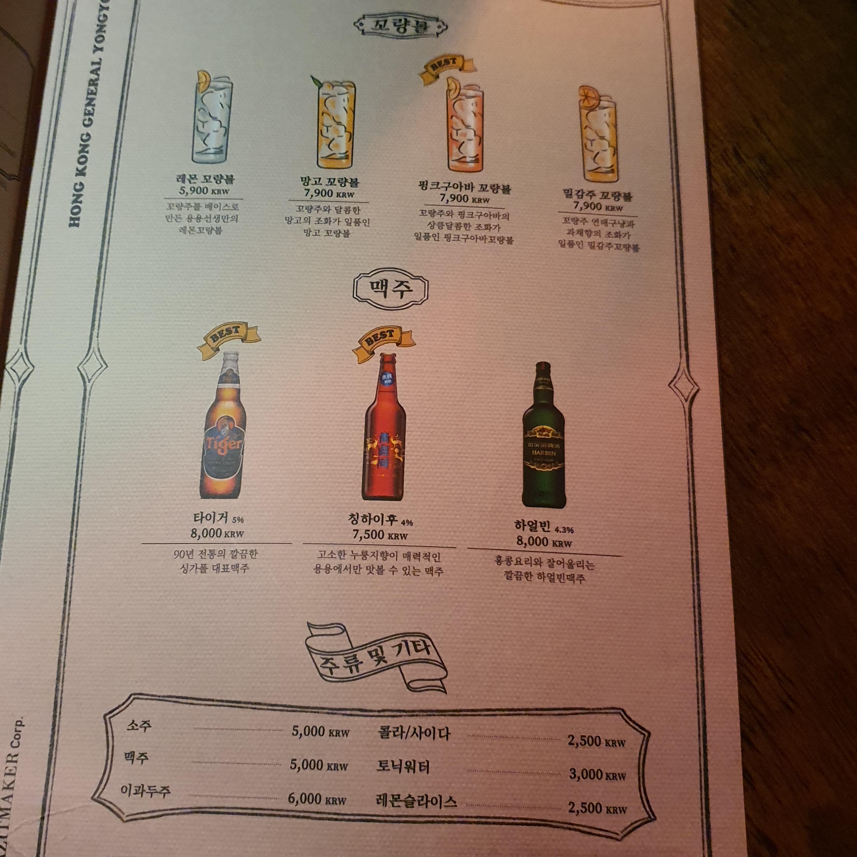 용용선생 대구 동성로점 내부 모습 및 메뉴