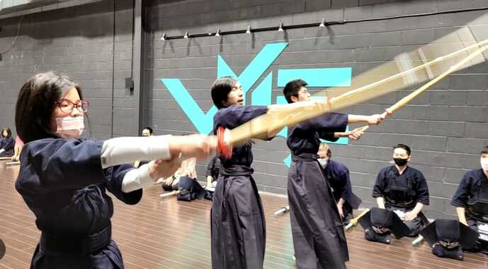 천장이 높은 체육관에서만 죽도를 휘두를 수 있습니다