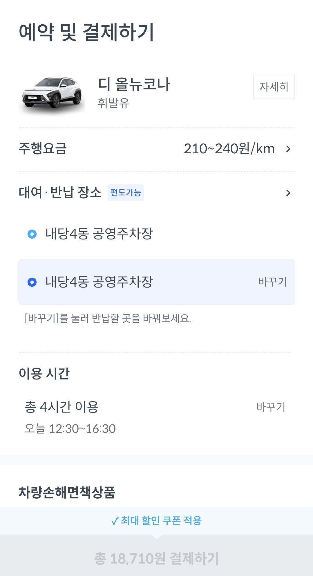 결제를 할 때는 내가 가진 할인 혜택, 쿠폰 등이 자동으로 적용됩니다