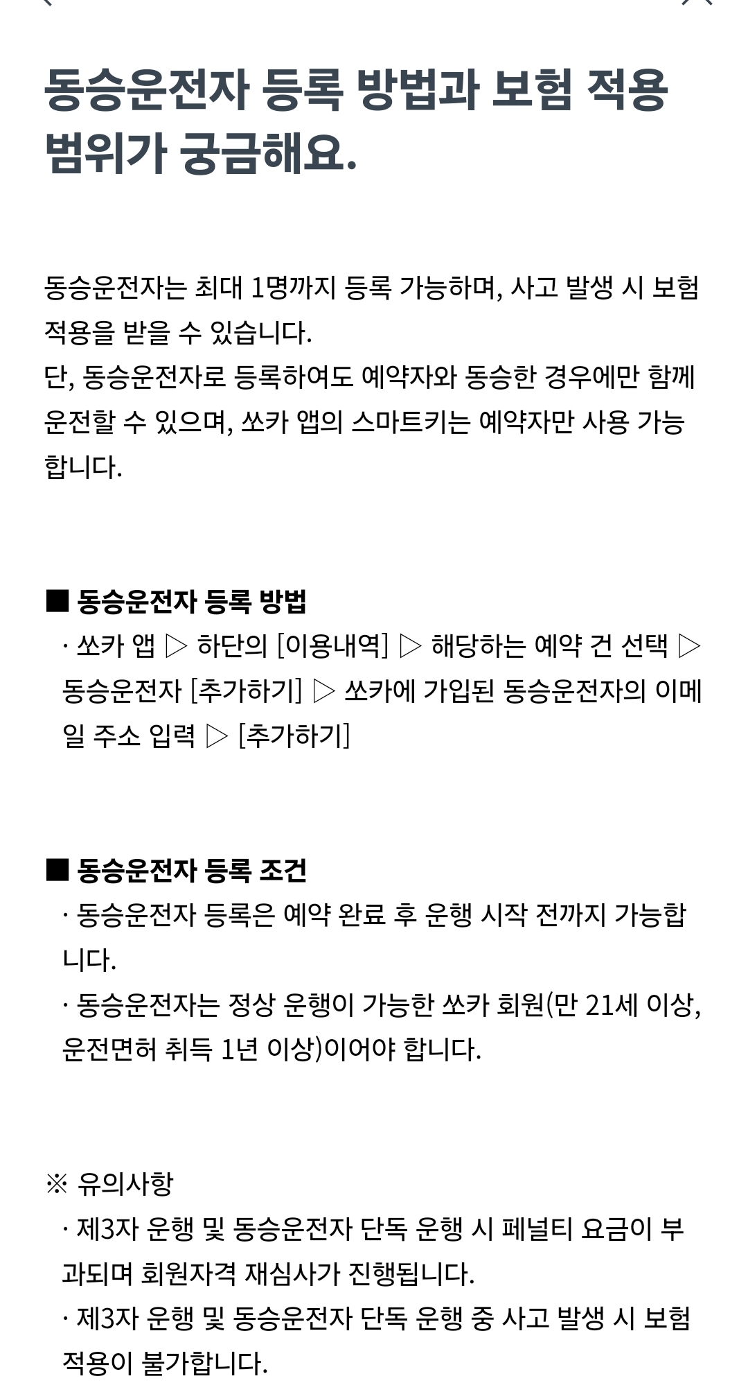 반드시 동승자도 쏘카 회원이어야 하고요