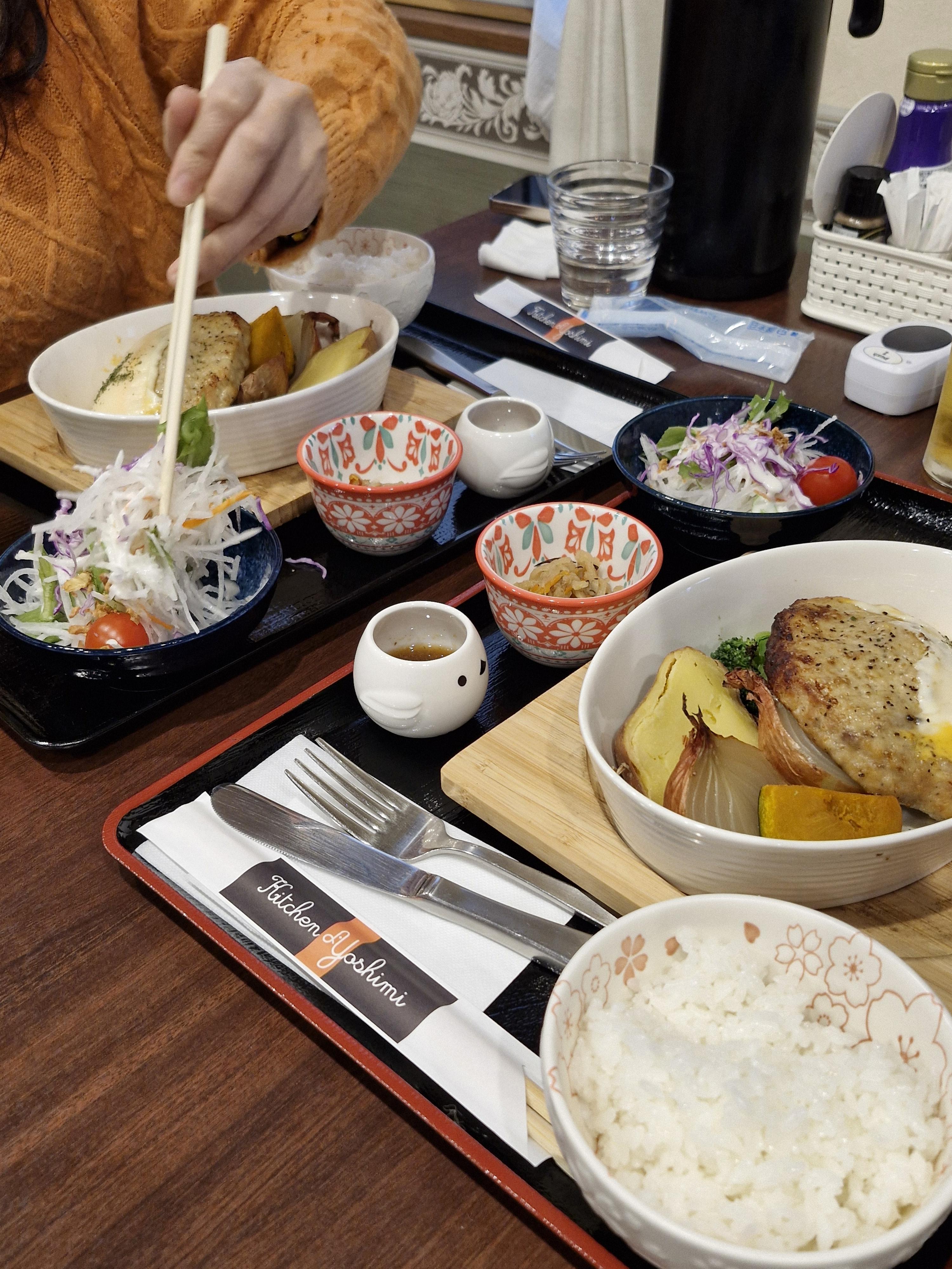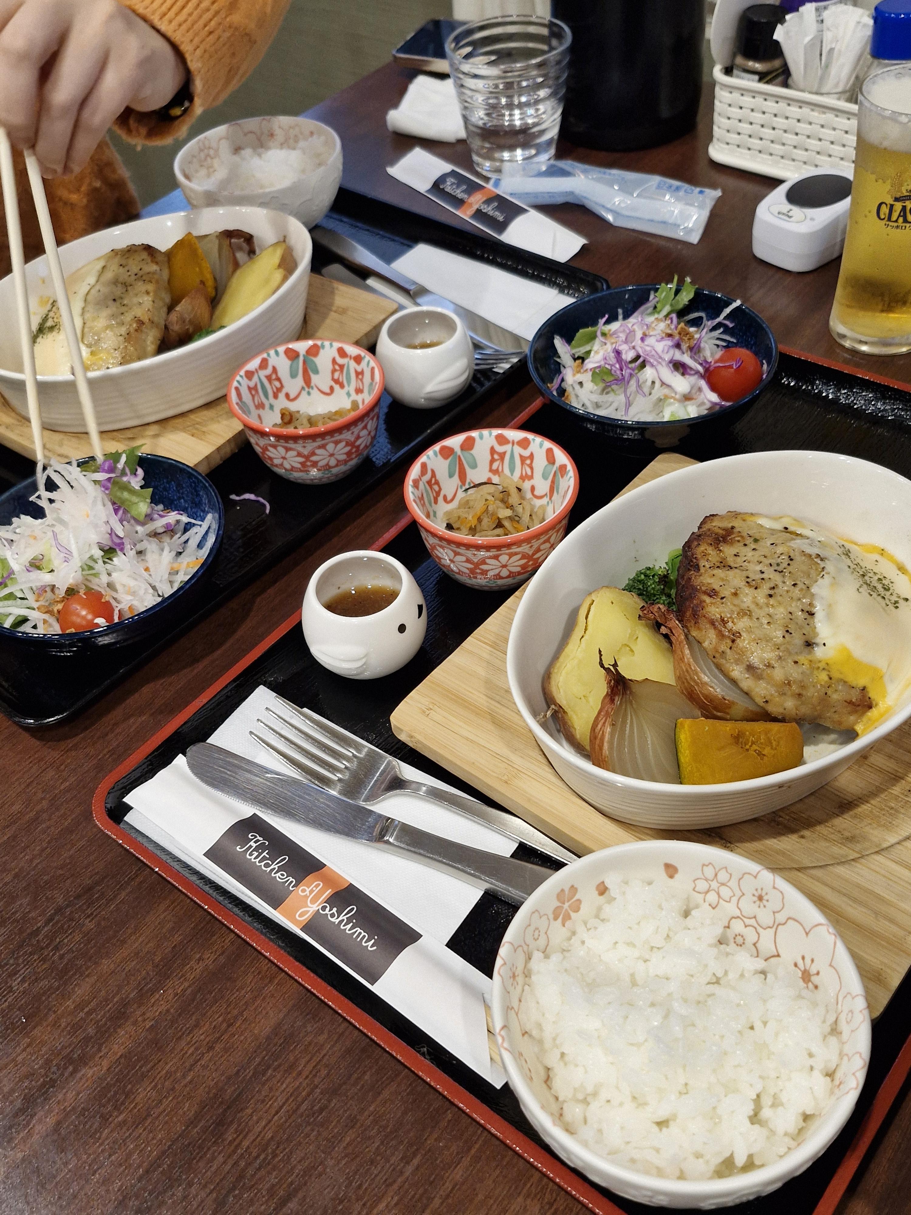 장국 샐러드 반찬 등 어쩌면 너무나 흔한 일본 가정식 조합이지만, 또 일본여행이 아니면 은근 먹기 어려운 조합의 정식이기도 합니다