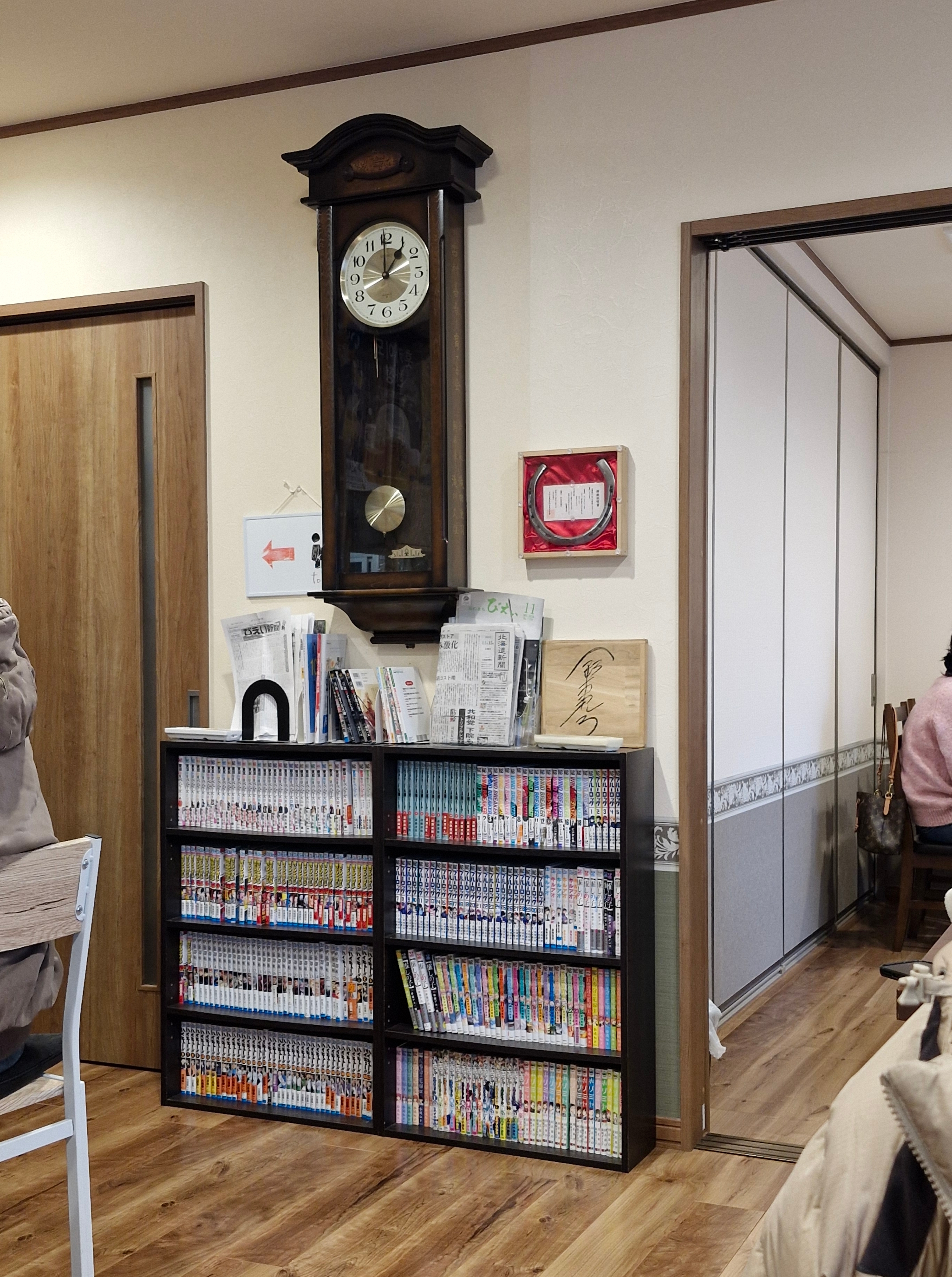 오래된 괘종시계와 만화책 등도 꽂혀 있어 재미있는 키친요시미였습니다