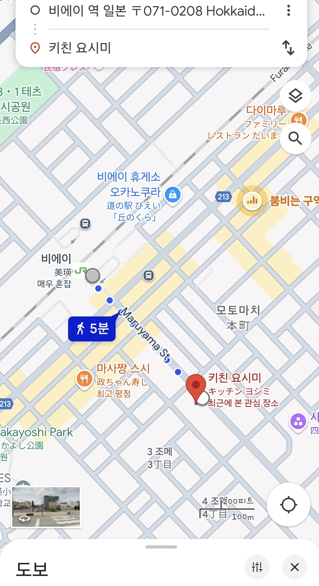 키친 요시미는 비에이역에서 도보 5분 이내의 매우 가까운 곳에 있습니다