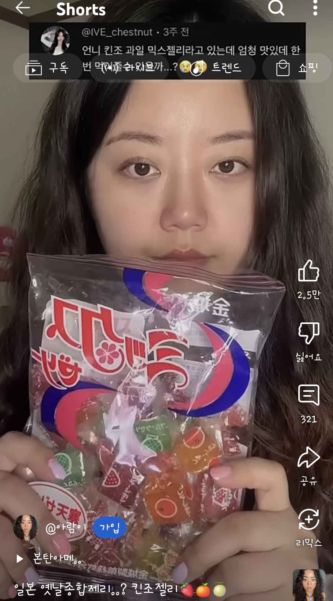 한창 인터넷 먹방 등에서 껍질째 먹는 일본 킨조젤리가 유행했습니다