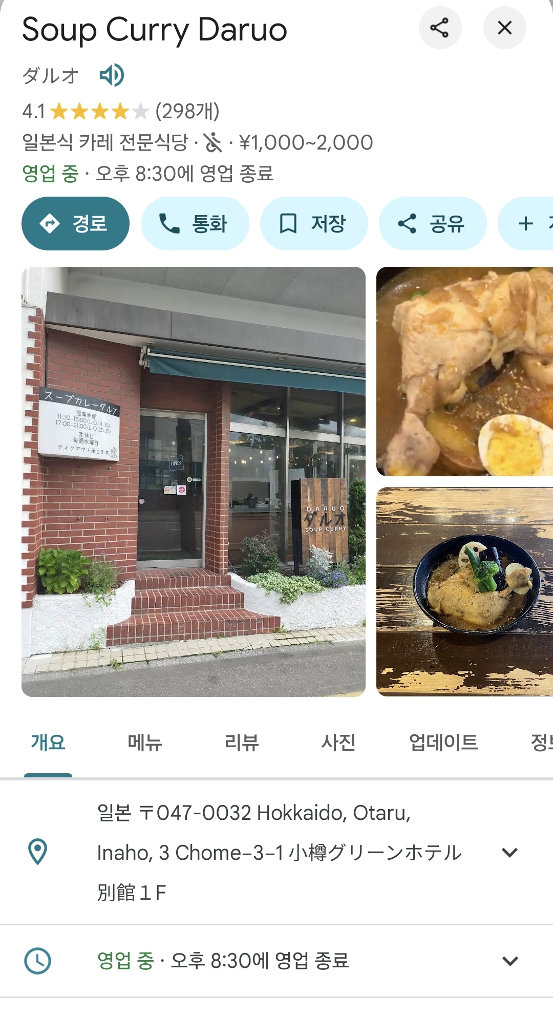 오타루 현지에서 방문한 스프카레 맛집 다루오 후기를 써봅니다