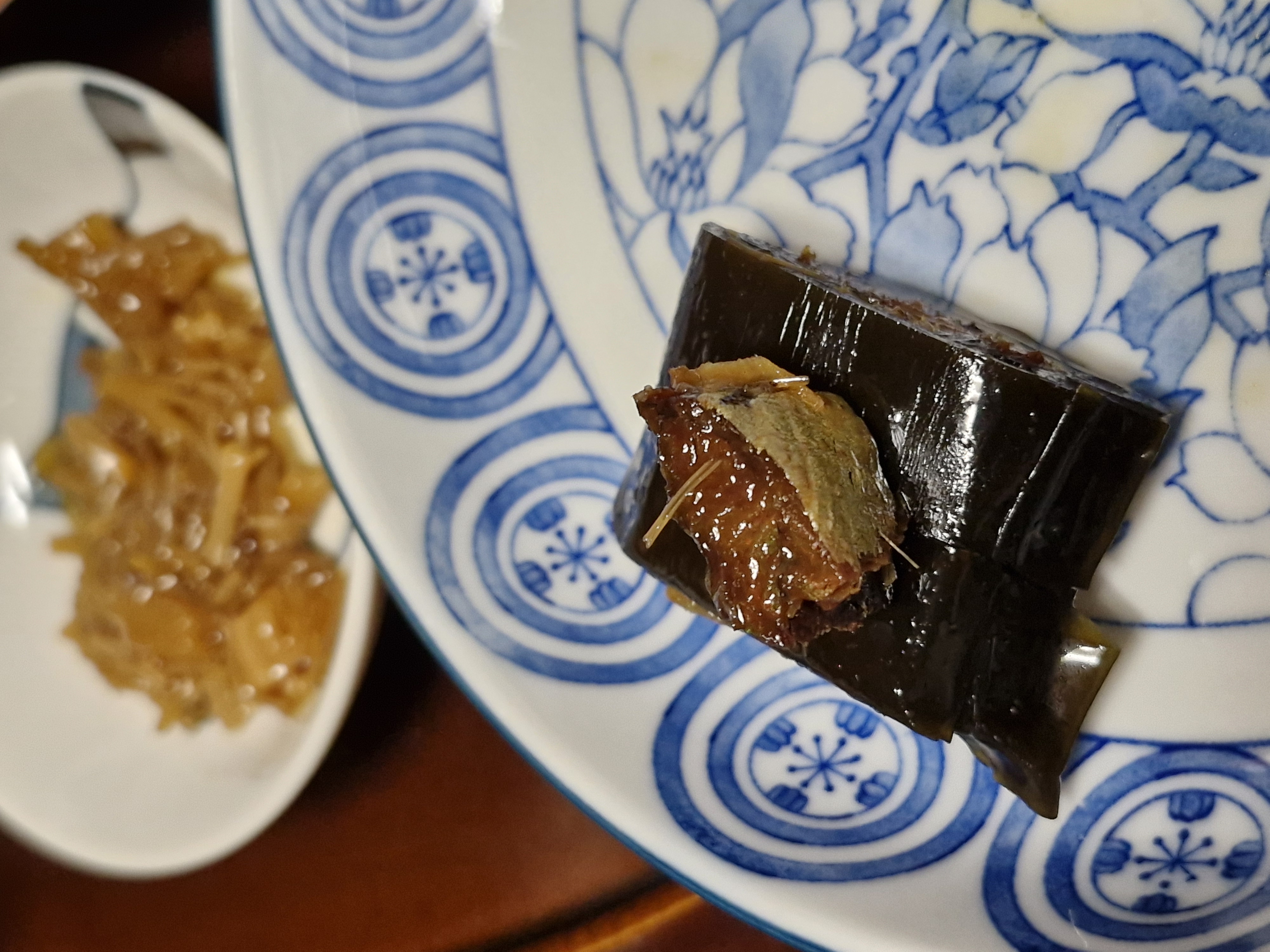 이 중에서도 제가 고른 건 간장 등 소스에 졸인 다시마 말이입니다