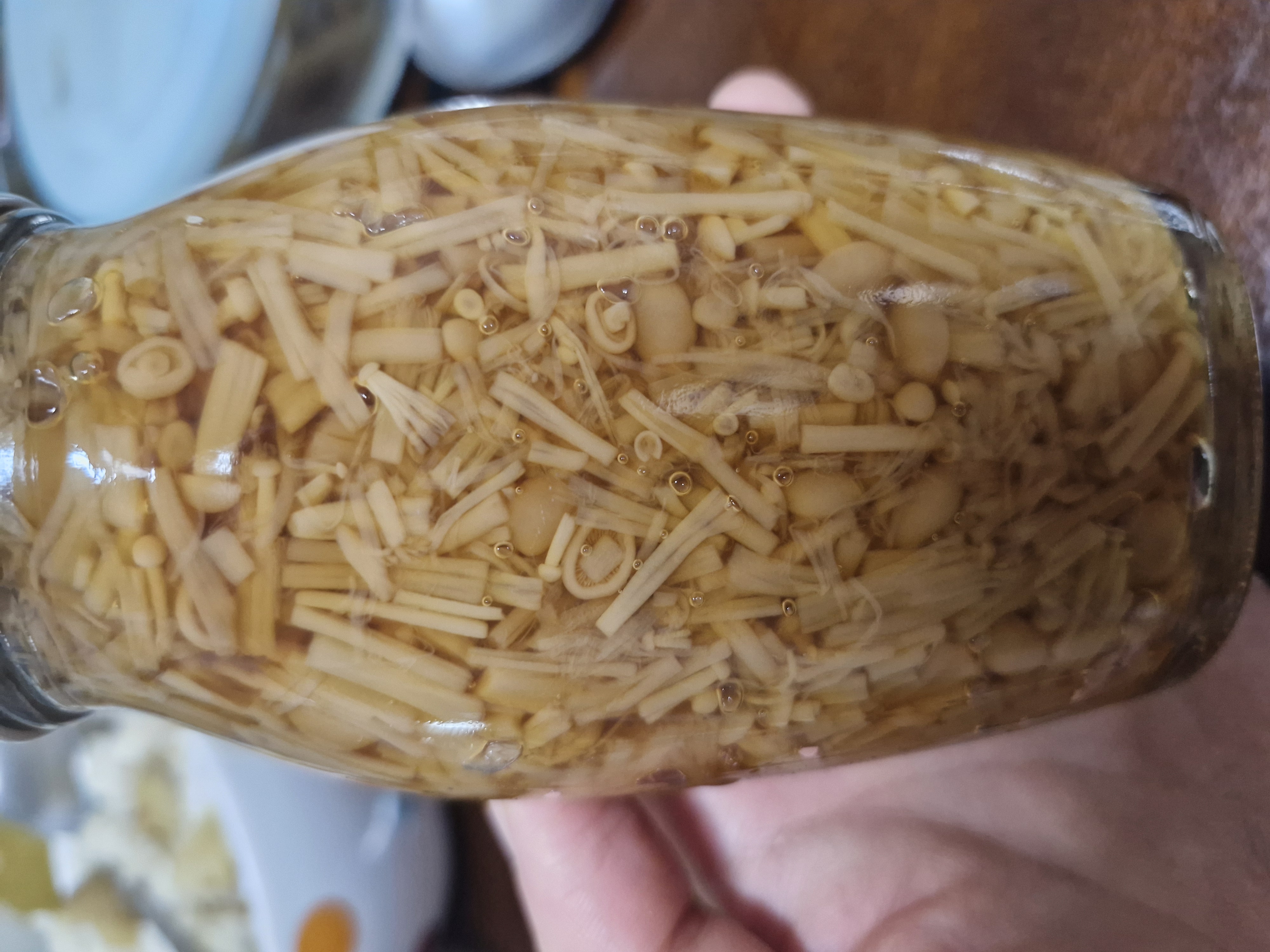 이렇게 잘게 잘린 팽이버섯이 조림 형태로 통에 담겨있다고 하는데요