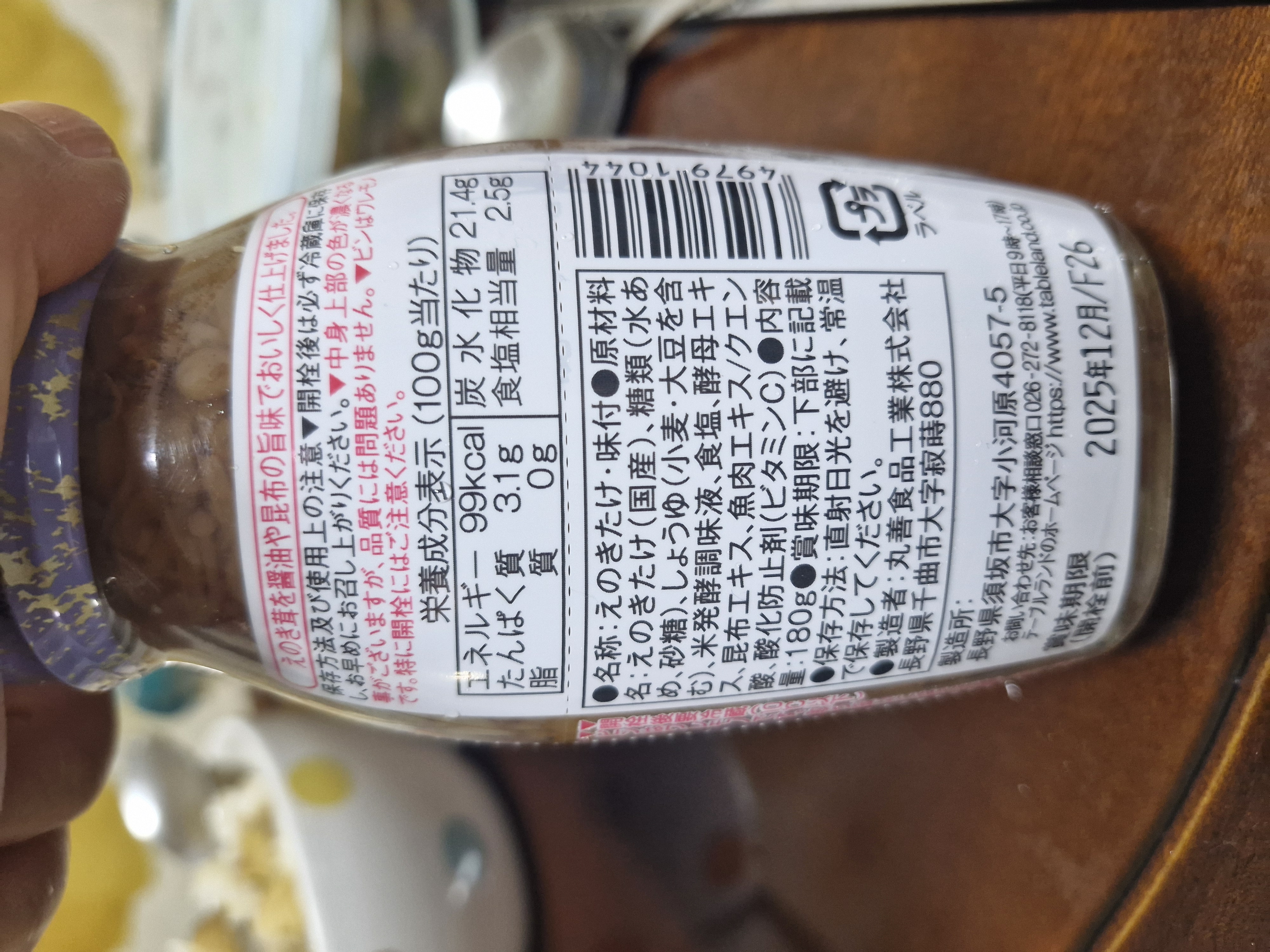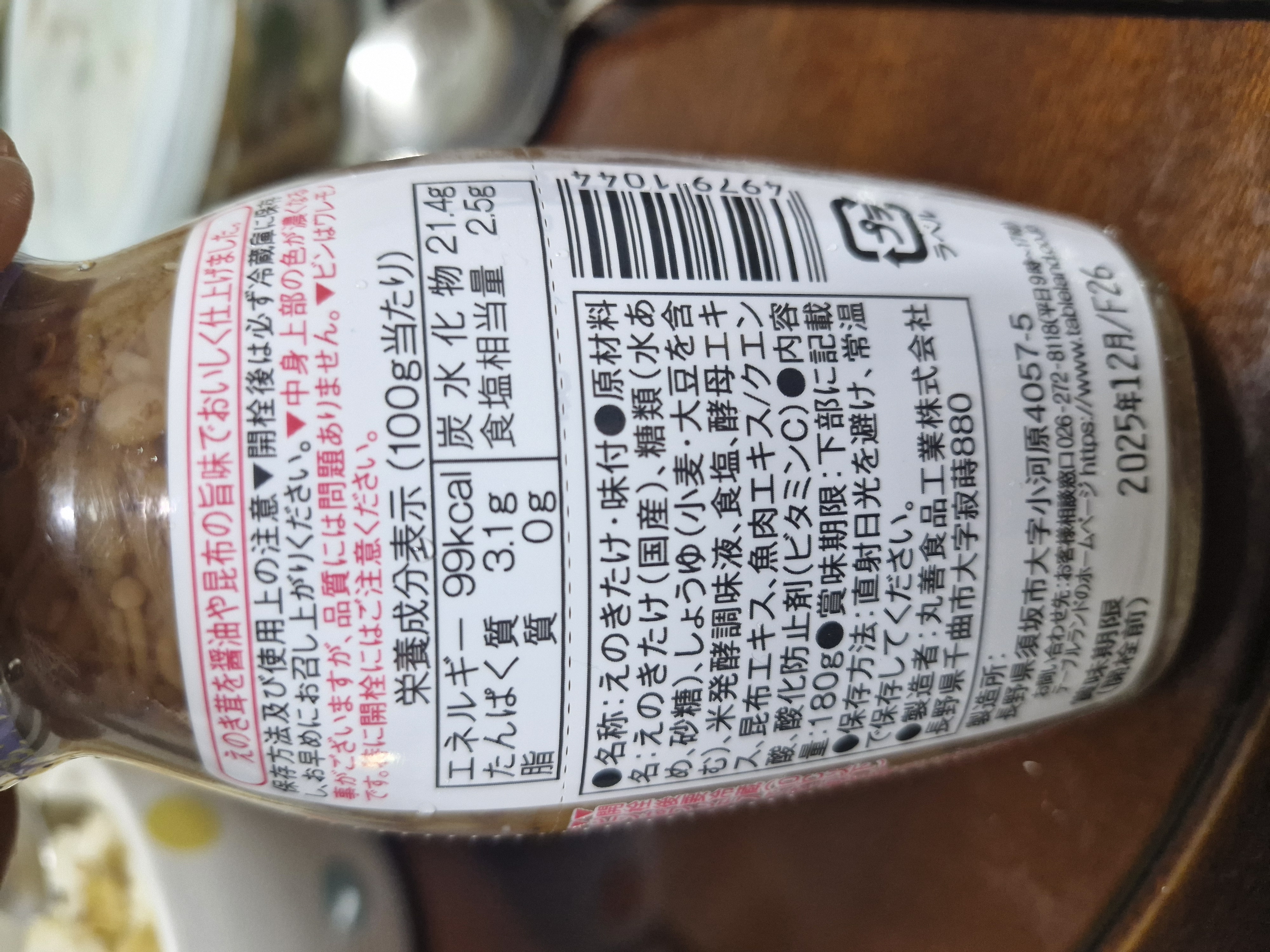 에노키버섯과 양념/고형분 80%라고 하네요