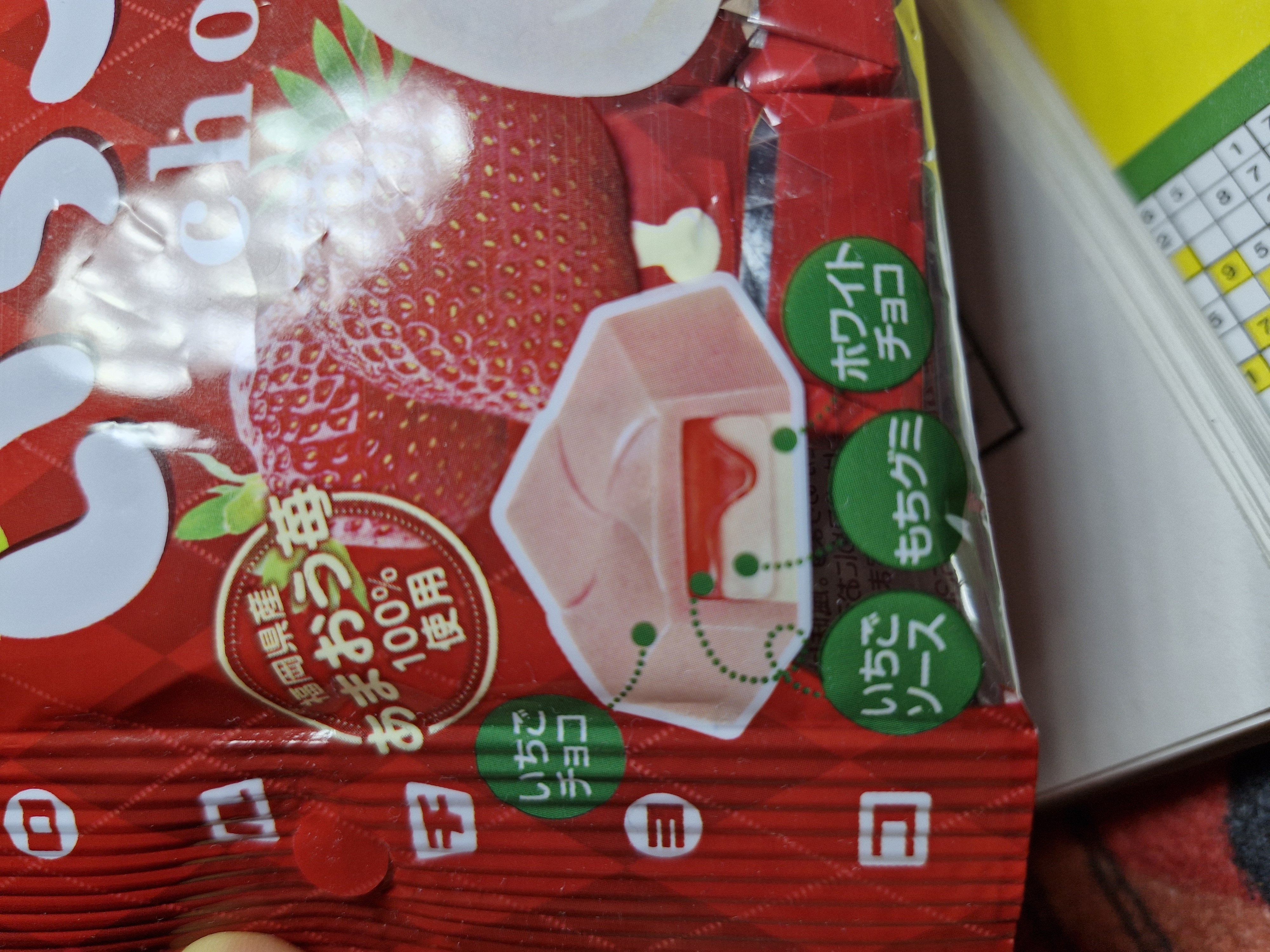 딱딱한 초콜릿 표면 안에 초코시럽과 모찌구미가 들어가 있다고 합니다