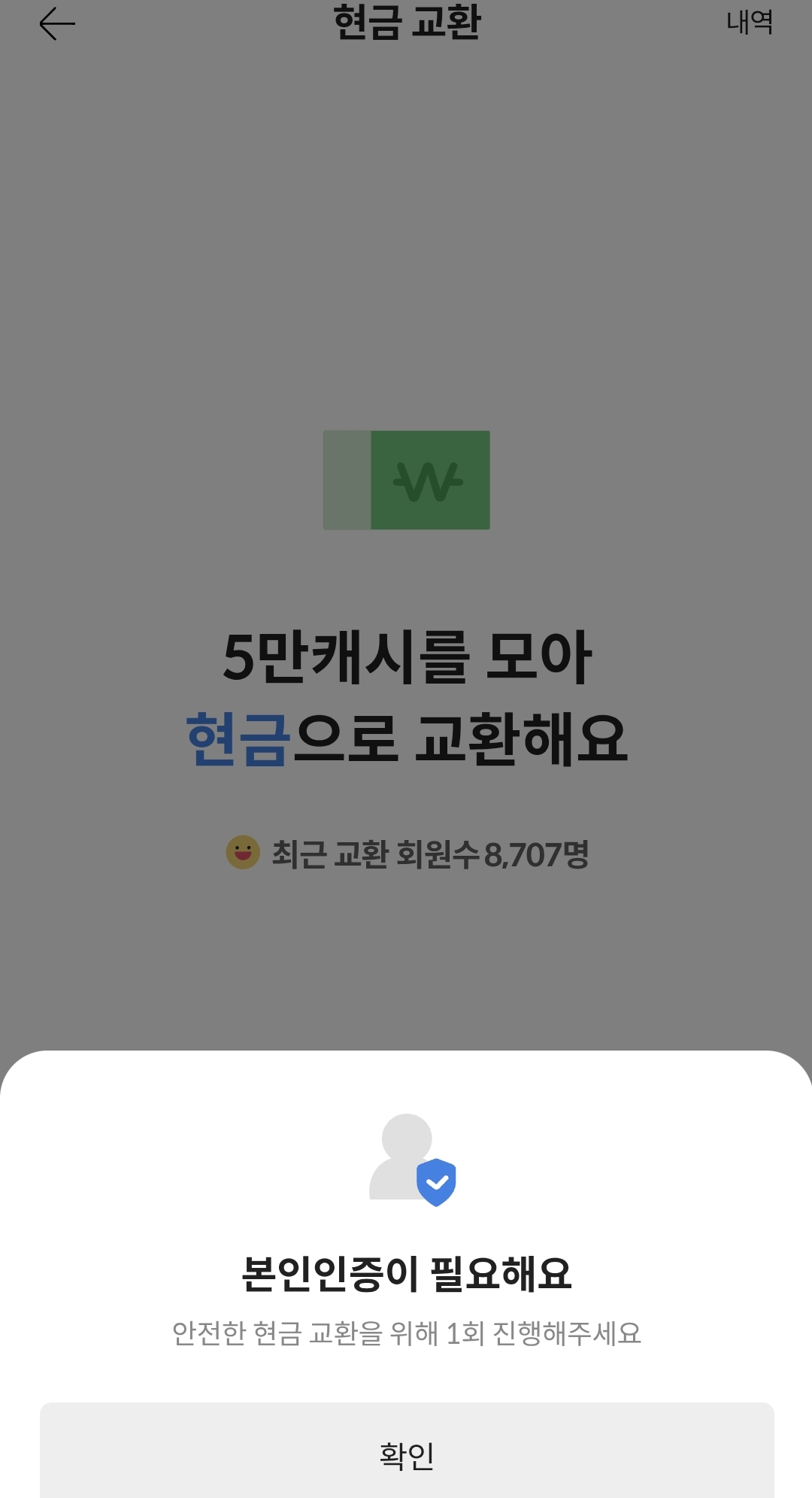 캐시슬라이드 일단 현금교환 버튼만 찾으면 이후 절차는 어렵지가 않습니다