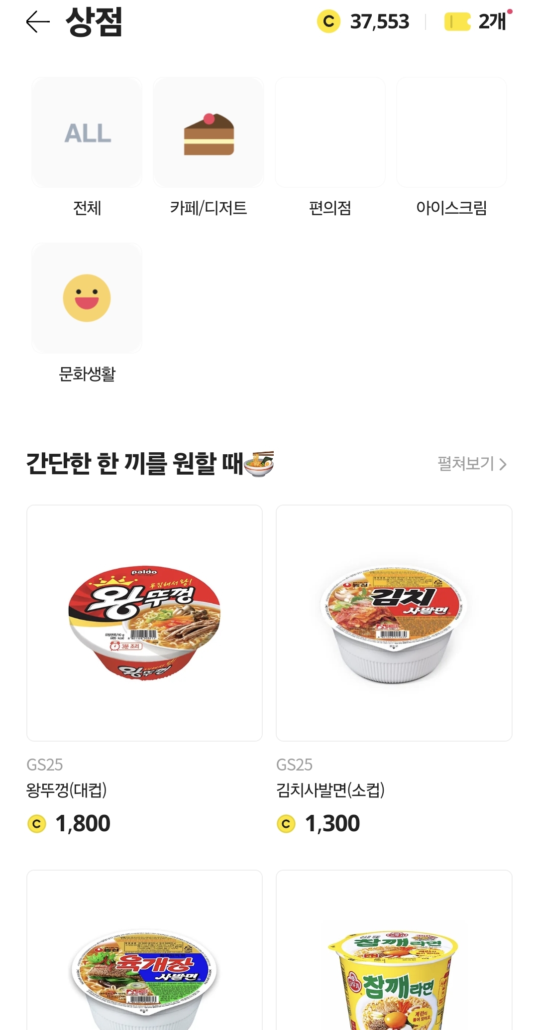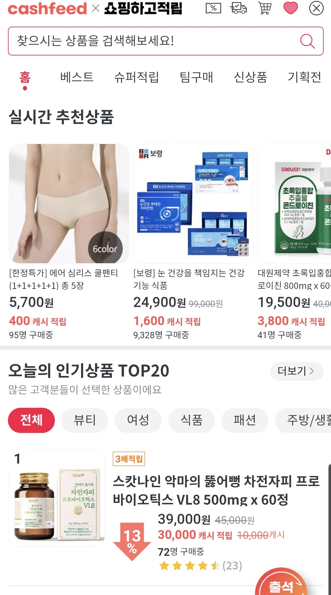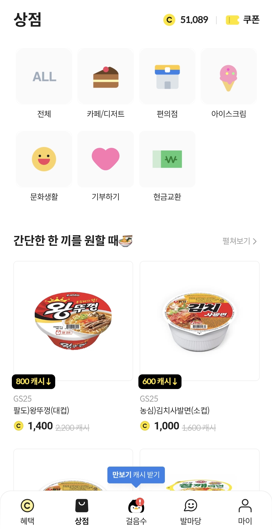 대신 상품 구매 시 캐시적립이 넉넉하게 가능해서