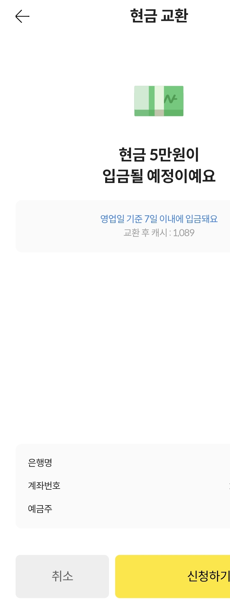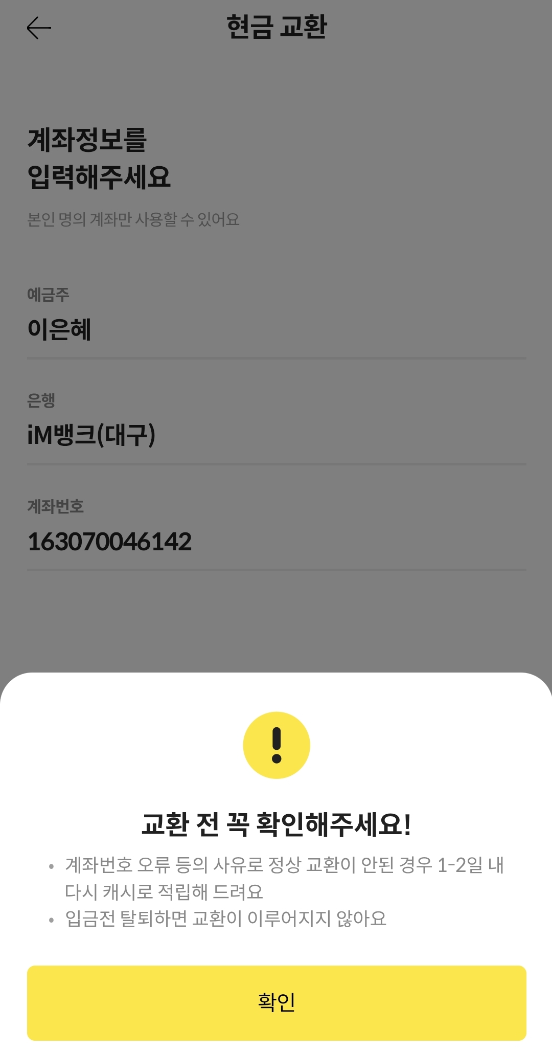 이후에는 시키는 대로 본인인증, 계좌입력 등을 거쳐 교환을 완료하면 됩니다