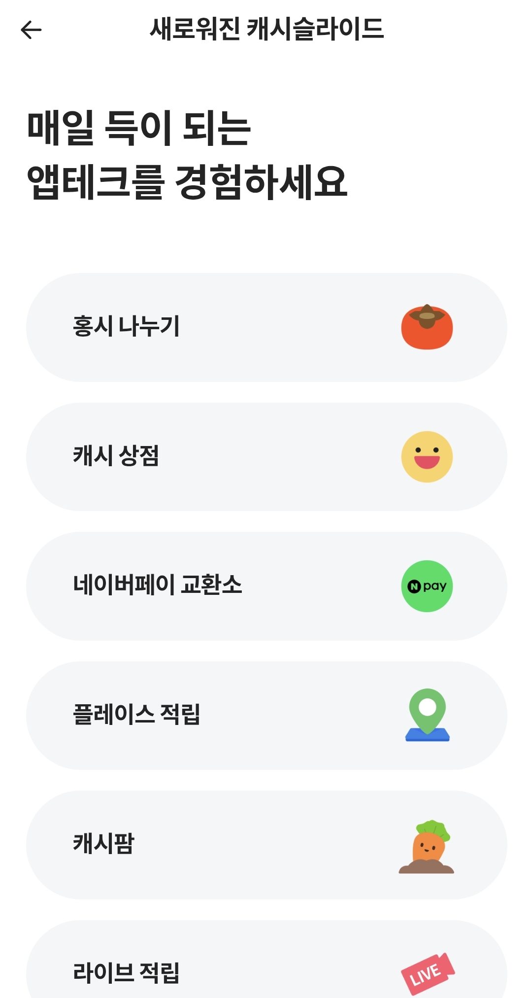 일단 캐시슬라이드 메인화면에 들어갑니다