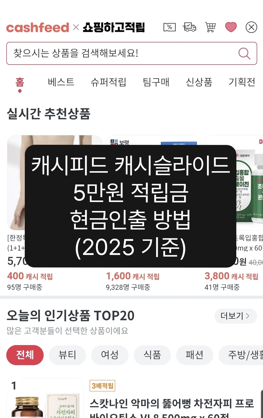 참고로 캐시피드 내에서 모은 적립금은 '쇼핑하고 적립'에서는 사용이 안 되는 듯합니다