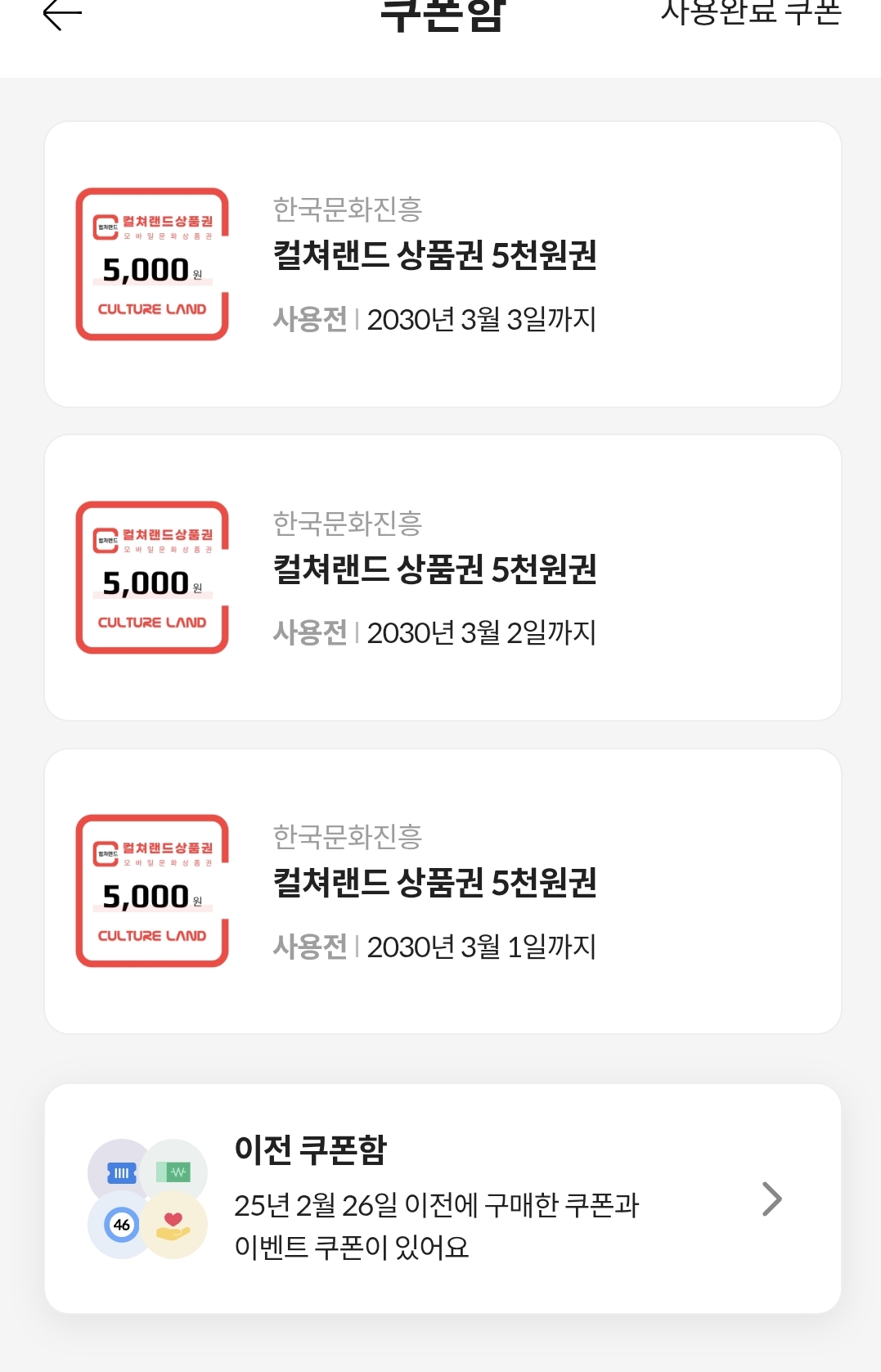 저는 컬처랜드 앱을 깔아서 상품권을 모두 등록한 후