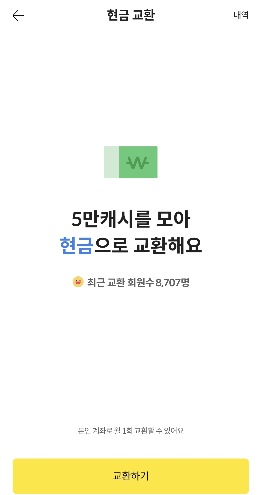 5만원부터 교환이 가능하며, 본인계좌로 월1회 교환이 된다고 합니다