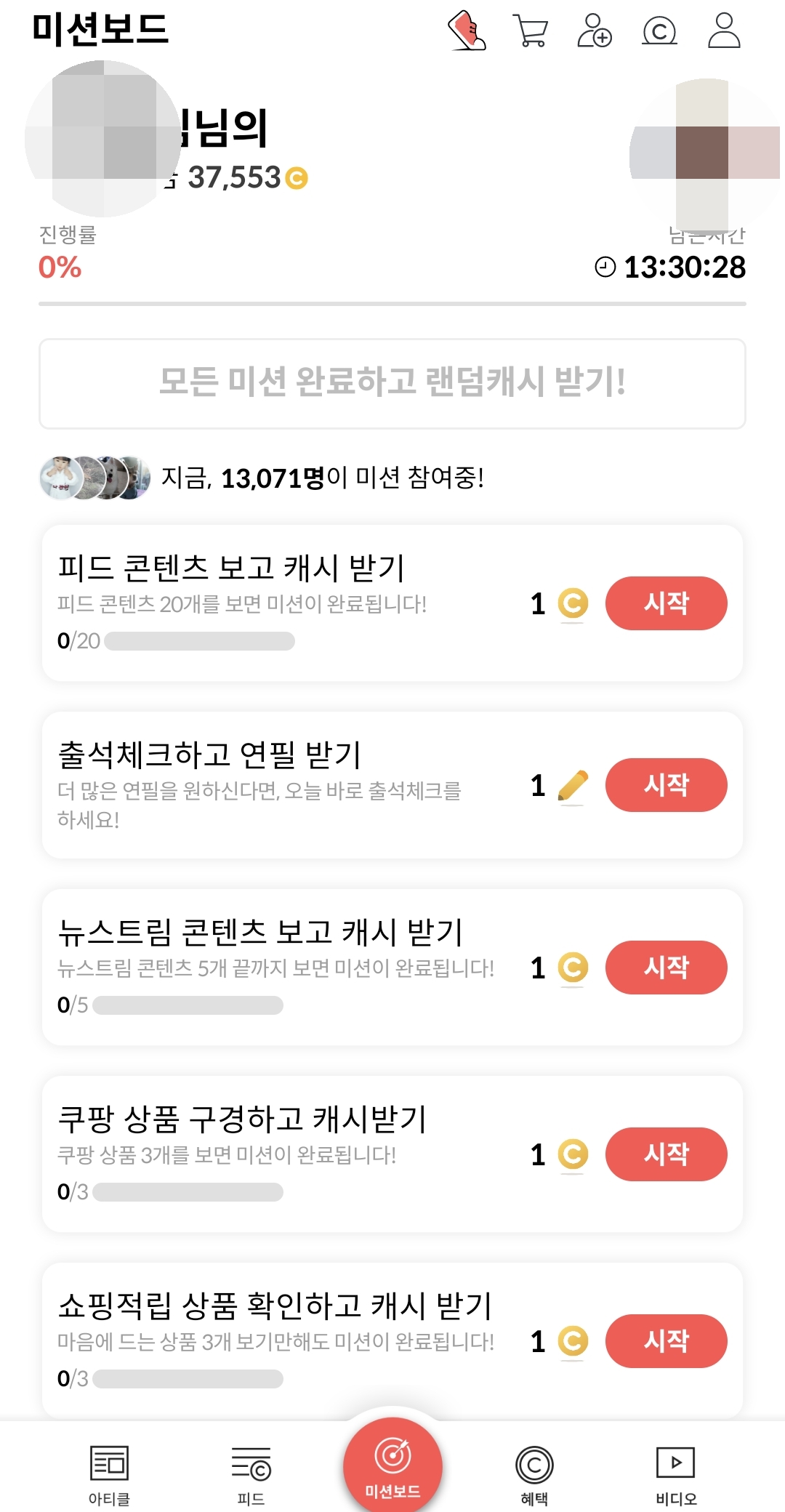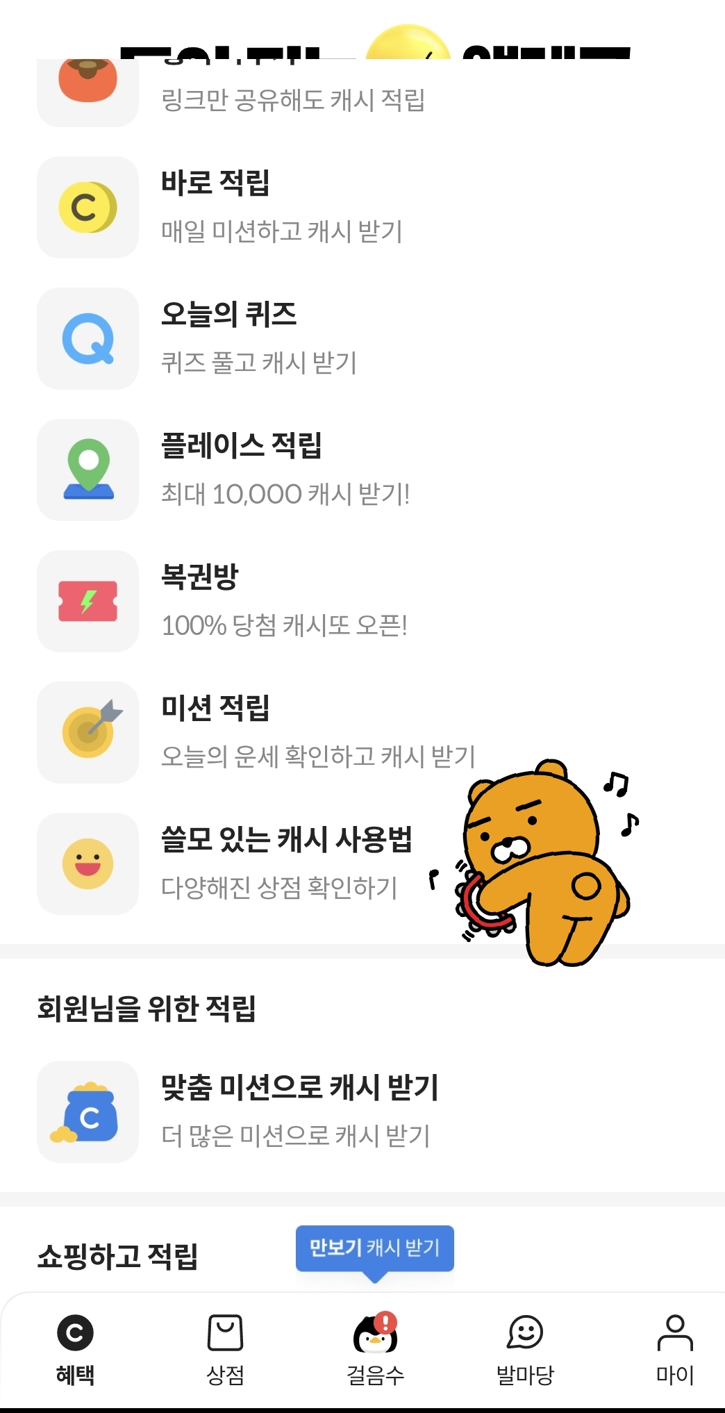 하단 '미션보드' 또는 '혜택' 탭에 들어갑니다