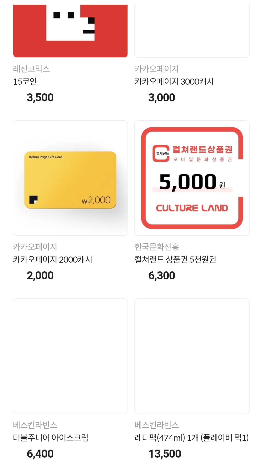 캐시피드 머니로 구매할 수 있는 다양한 상품, 상품권 등이 있는데요