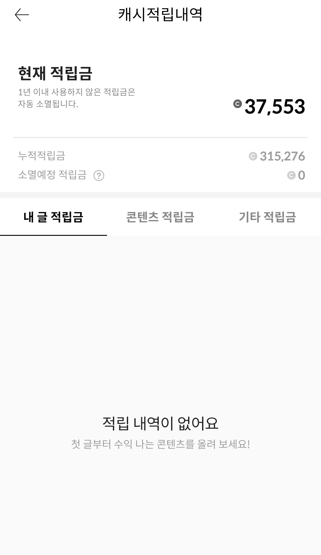 캐시 쌓이는 속도가 느리기 때문에 소멸예정 적립금이 좀 있습니다