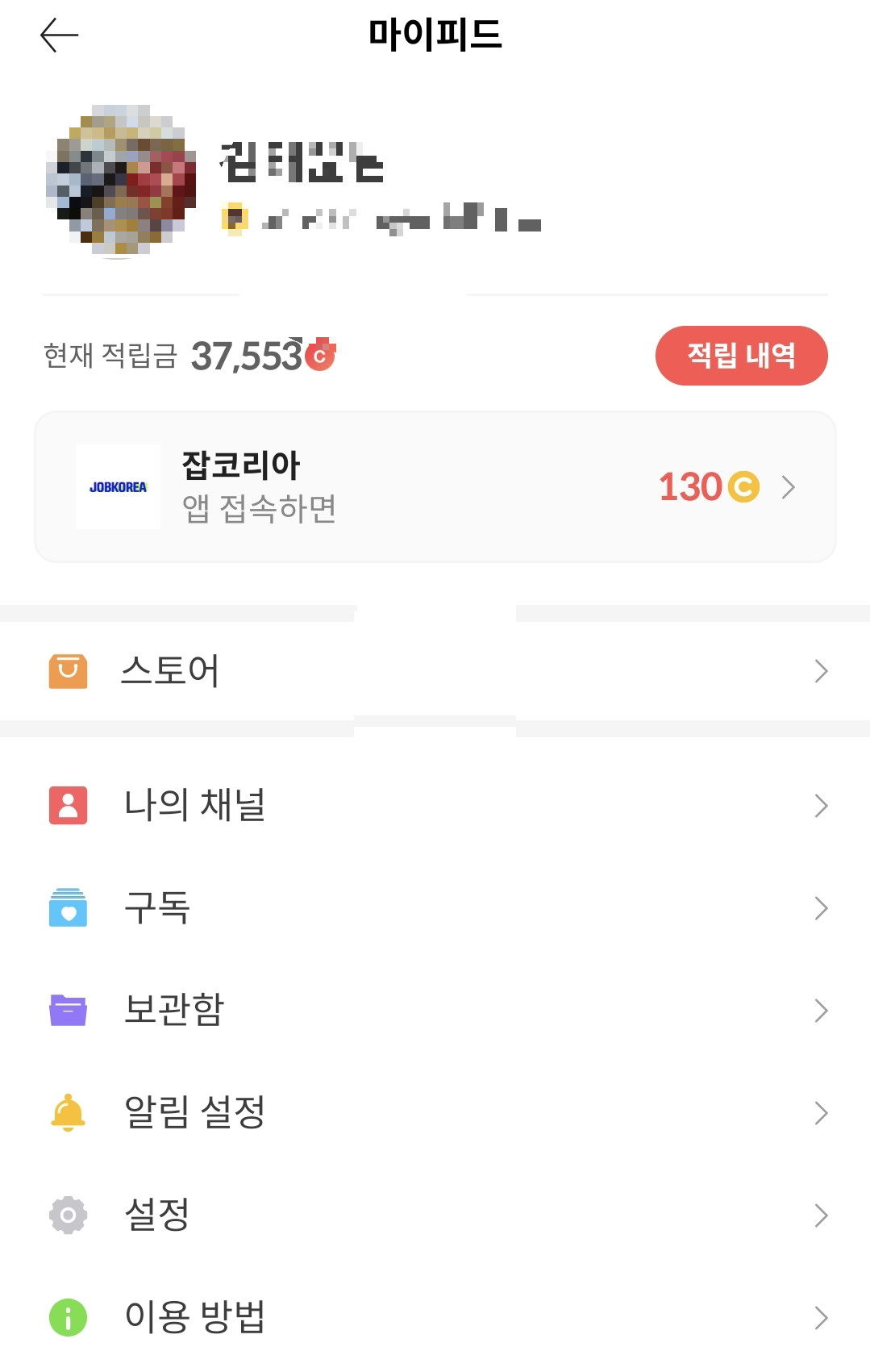 내 개인정보, 설정 등을 볼 수 있는 '마이피드' 페이지인데요