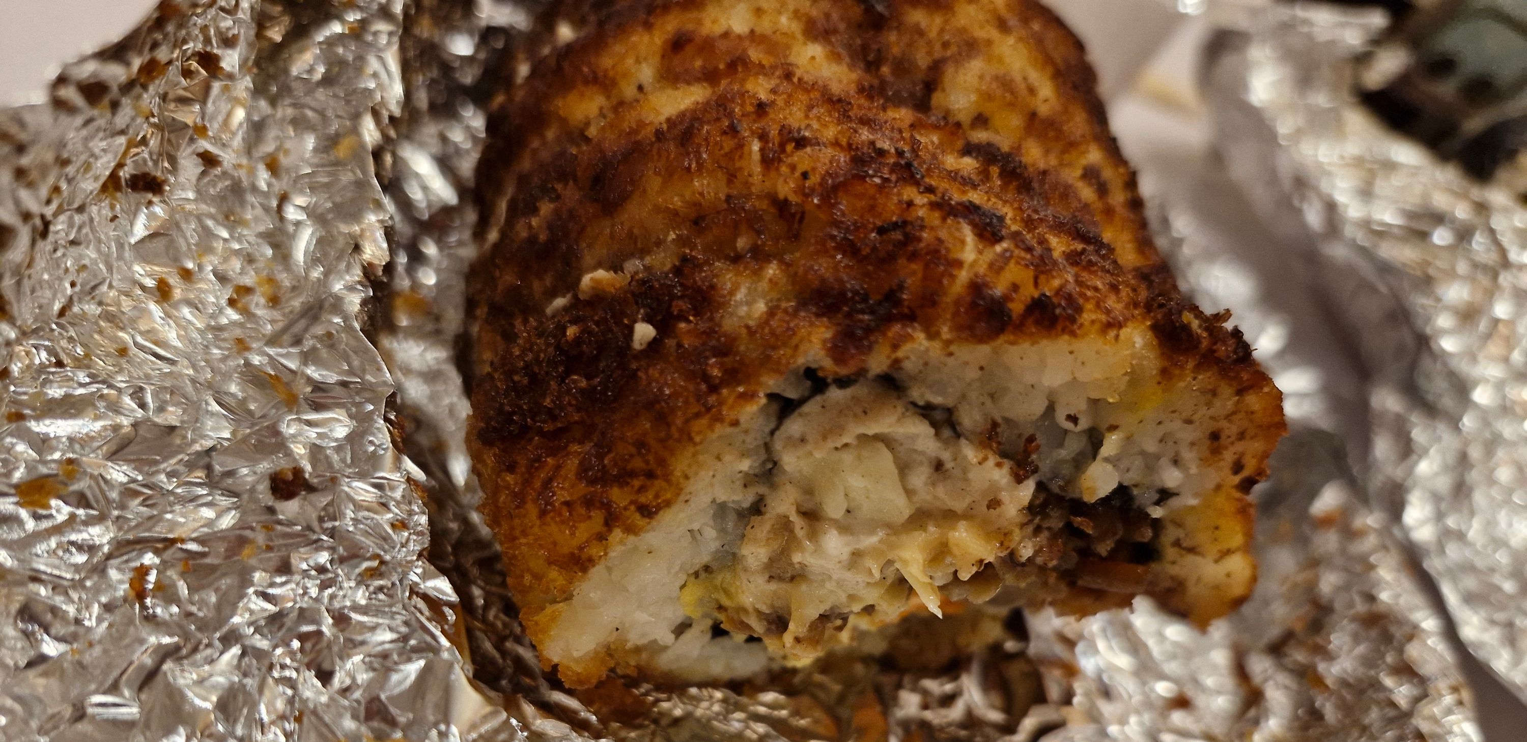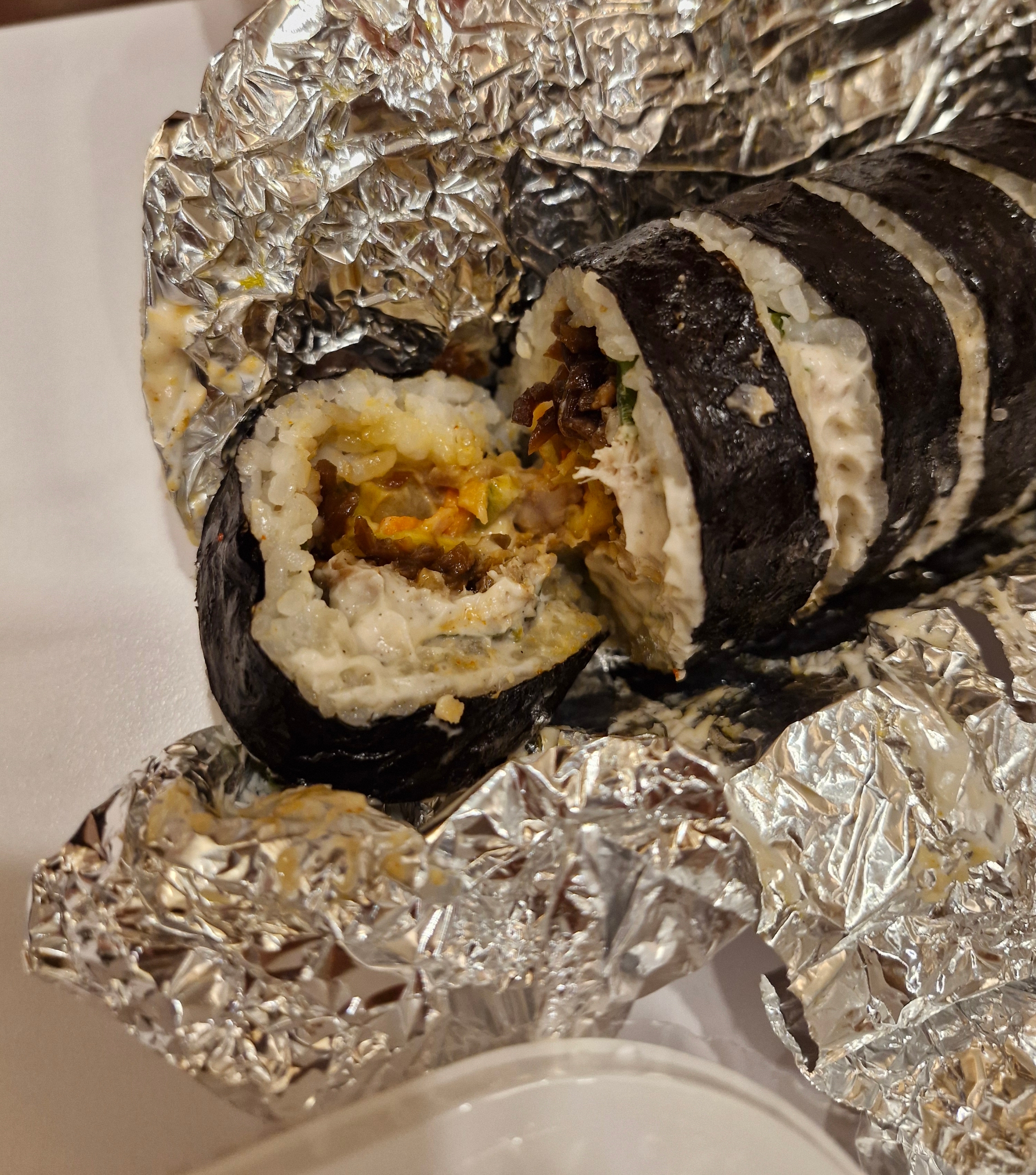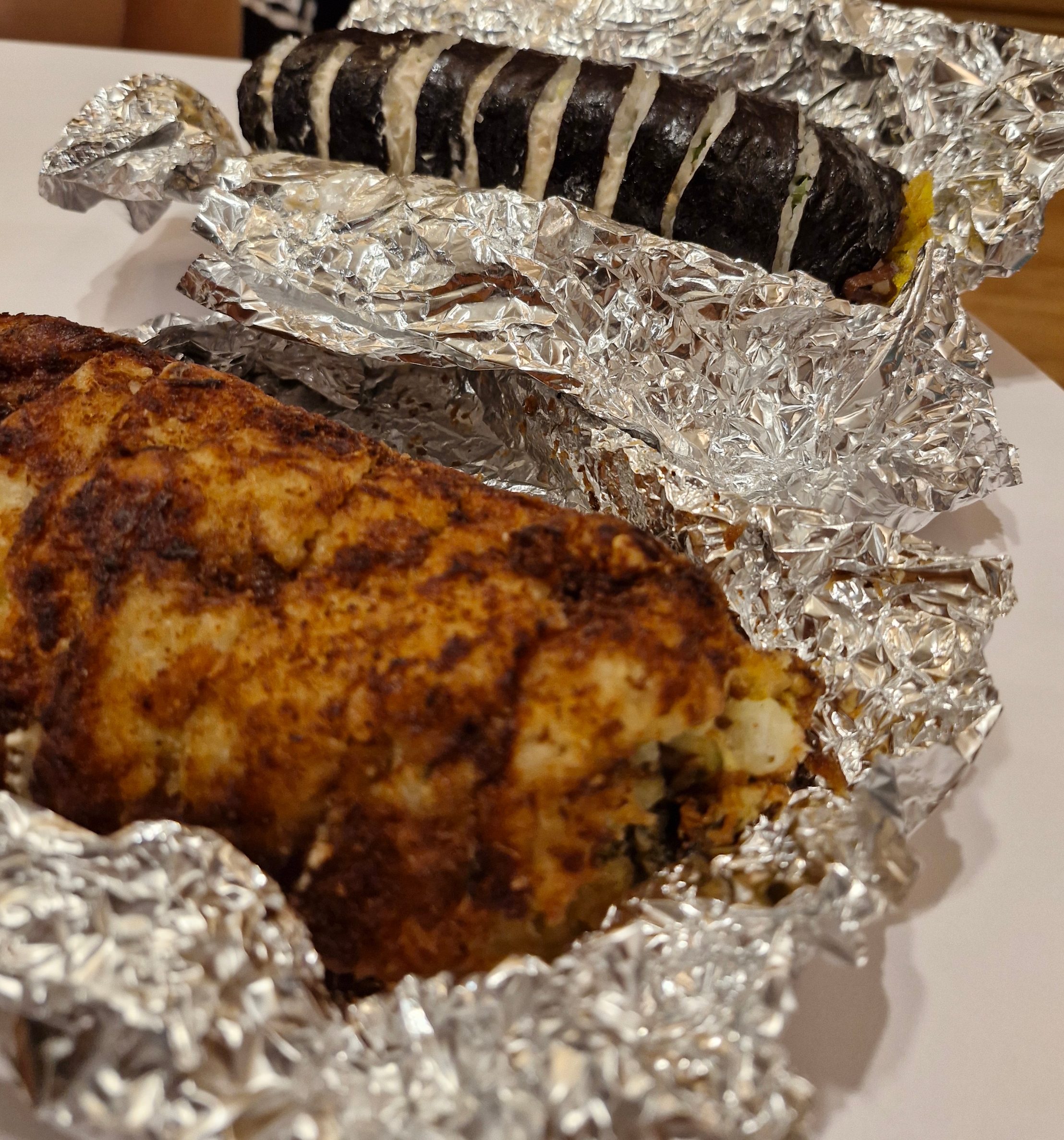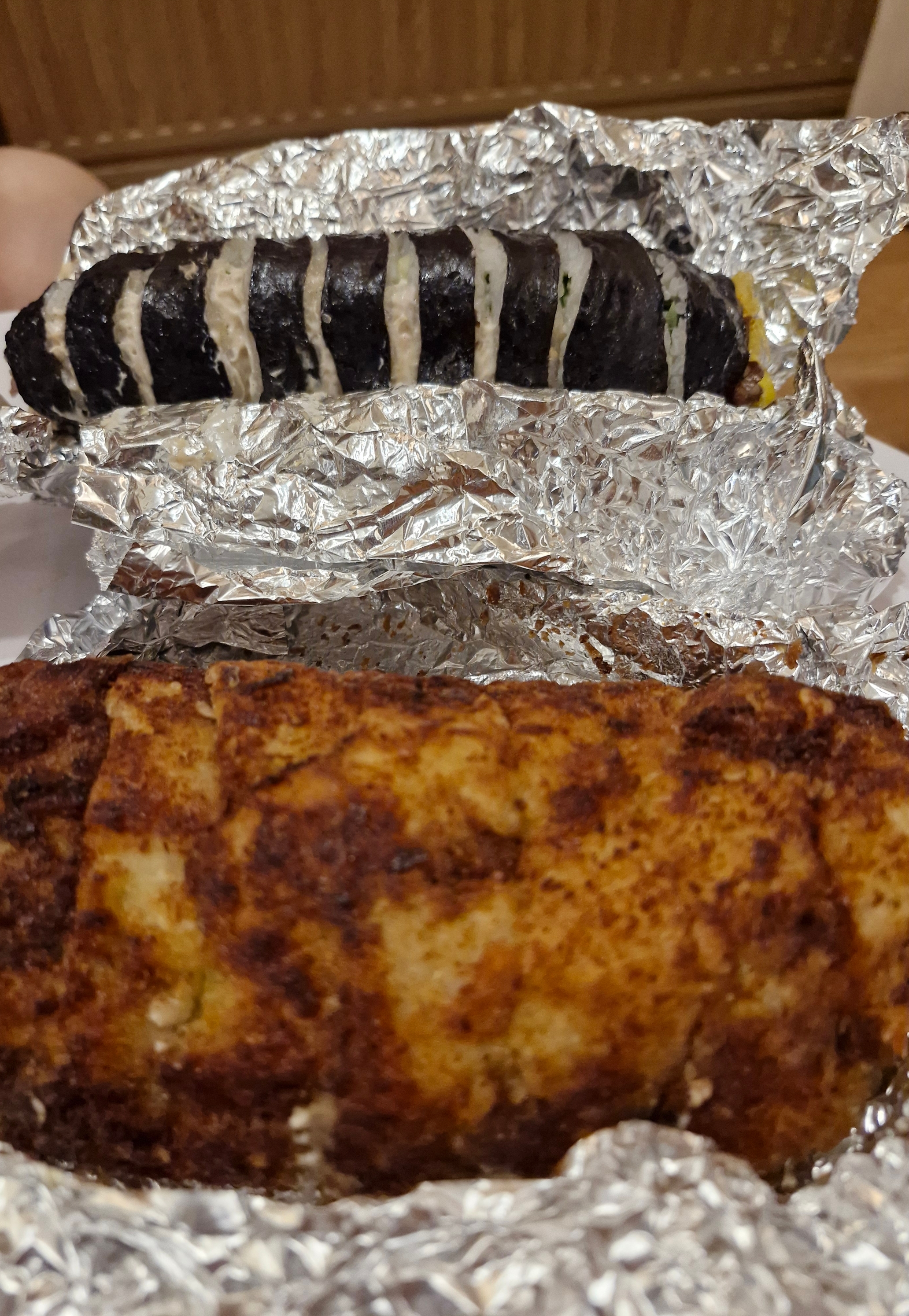 아주 두터운 김밥을 통째로 기름에 지져낸 느낌입니다