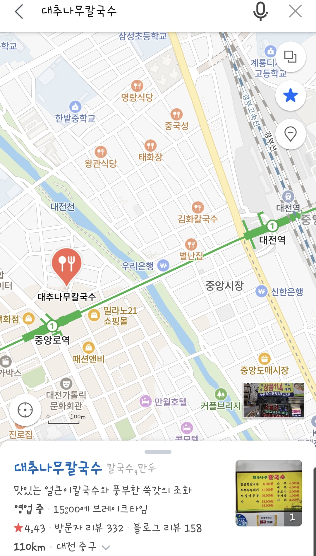 대추나무칼국수는 대전역과 중앙로역 사이에 있습니다