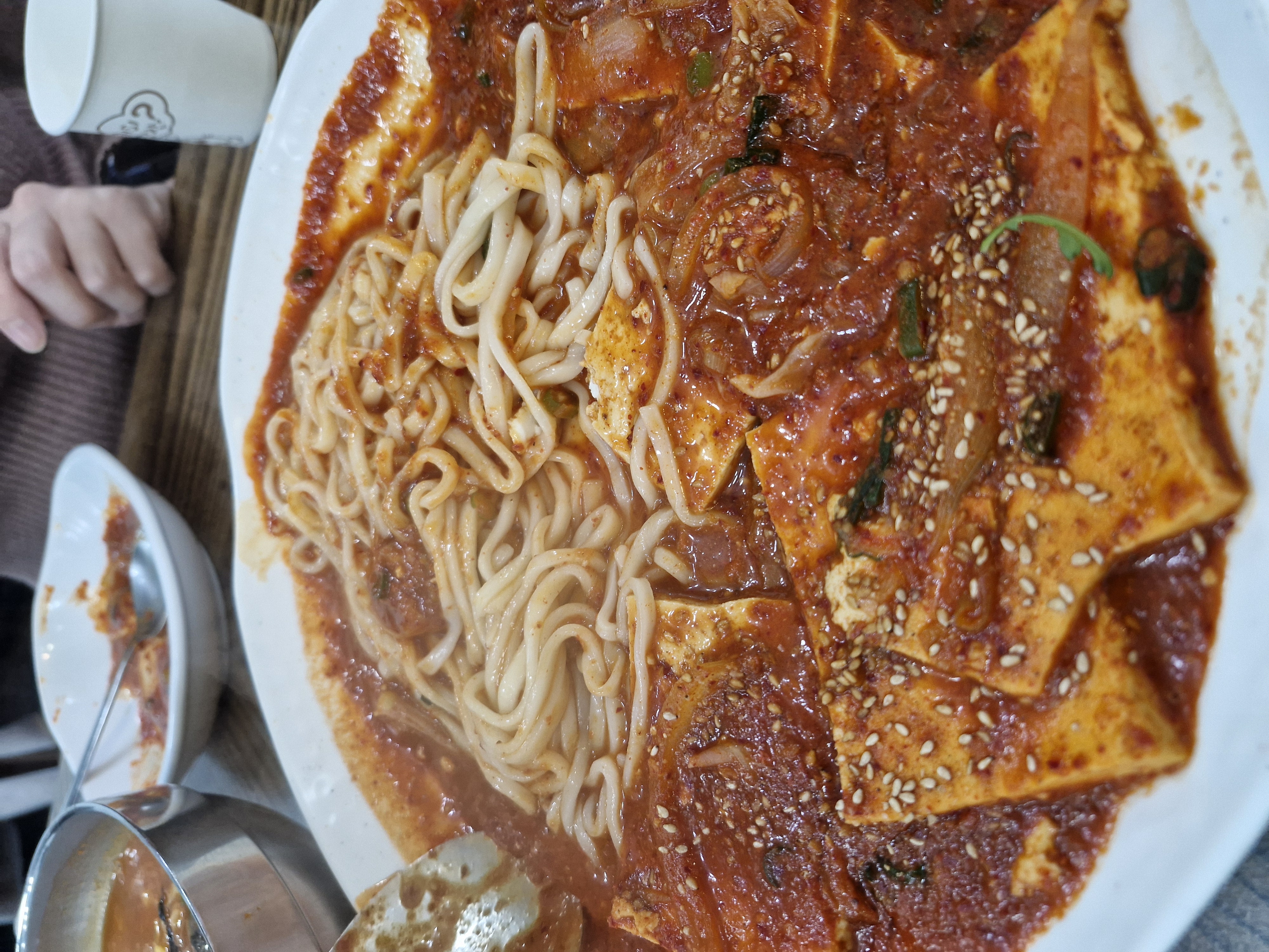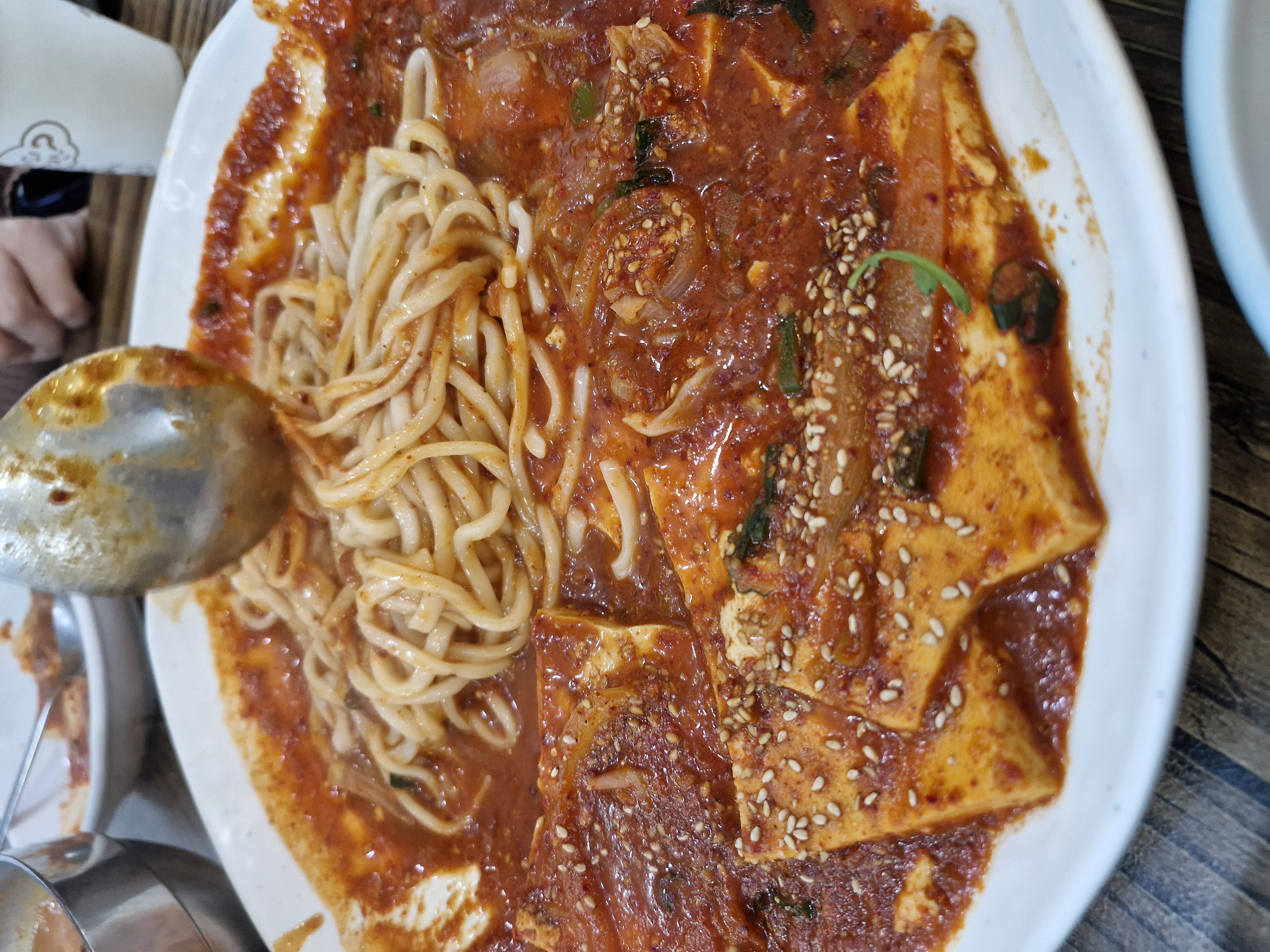 두부두루치기는 어느 정도 두부를 먹은 후 사리를 투척했습니다