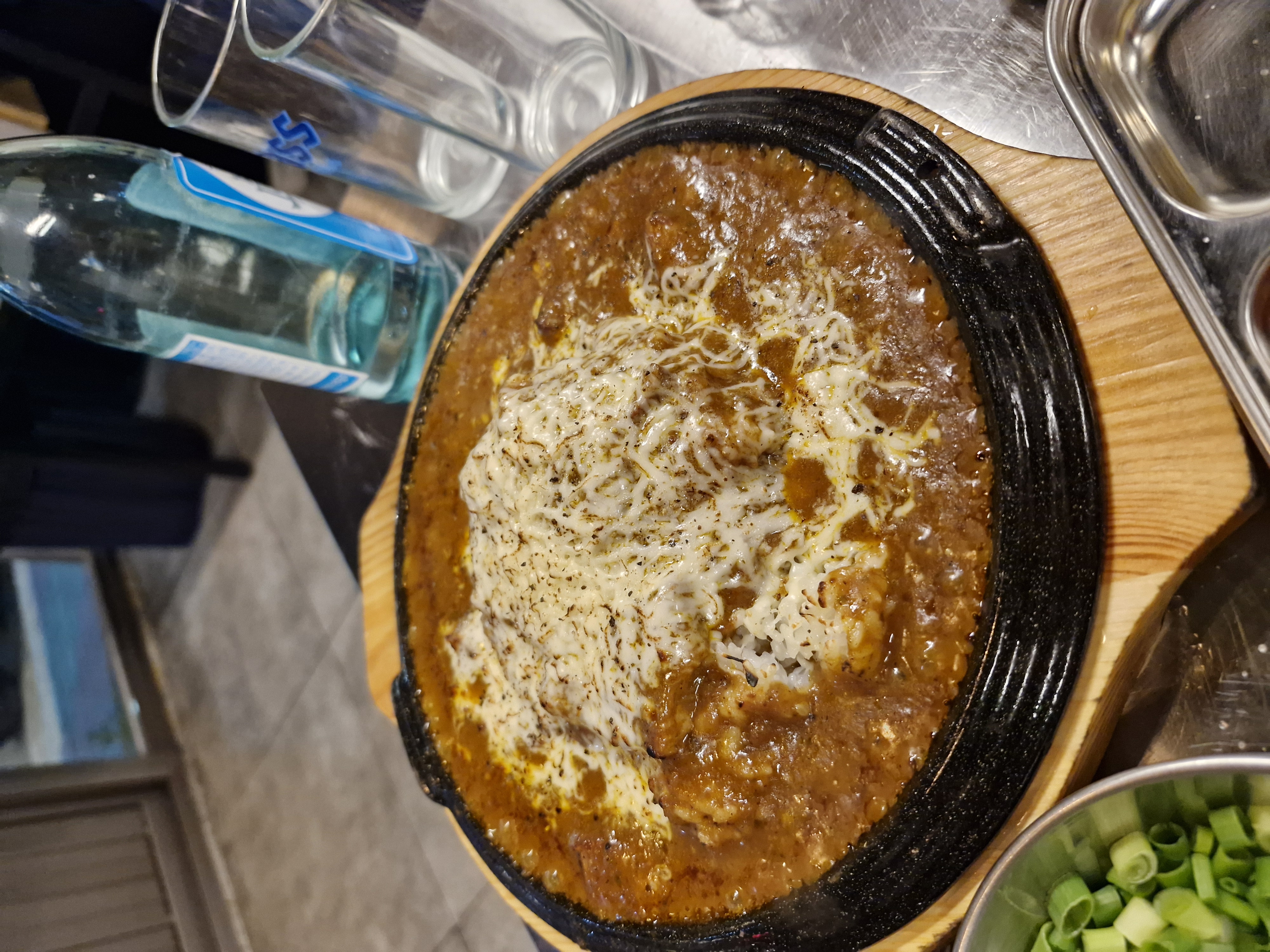 돌판에 지글지글 따뜻하게 나오니 고기에 곁들여 먹기에도 안성맞춤이었습니다