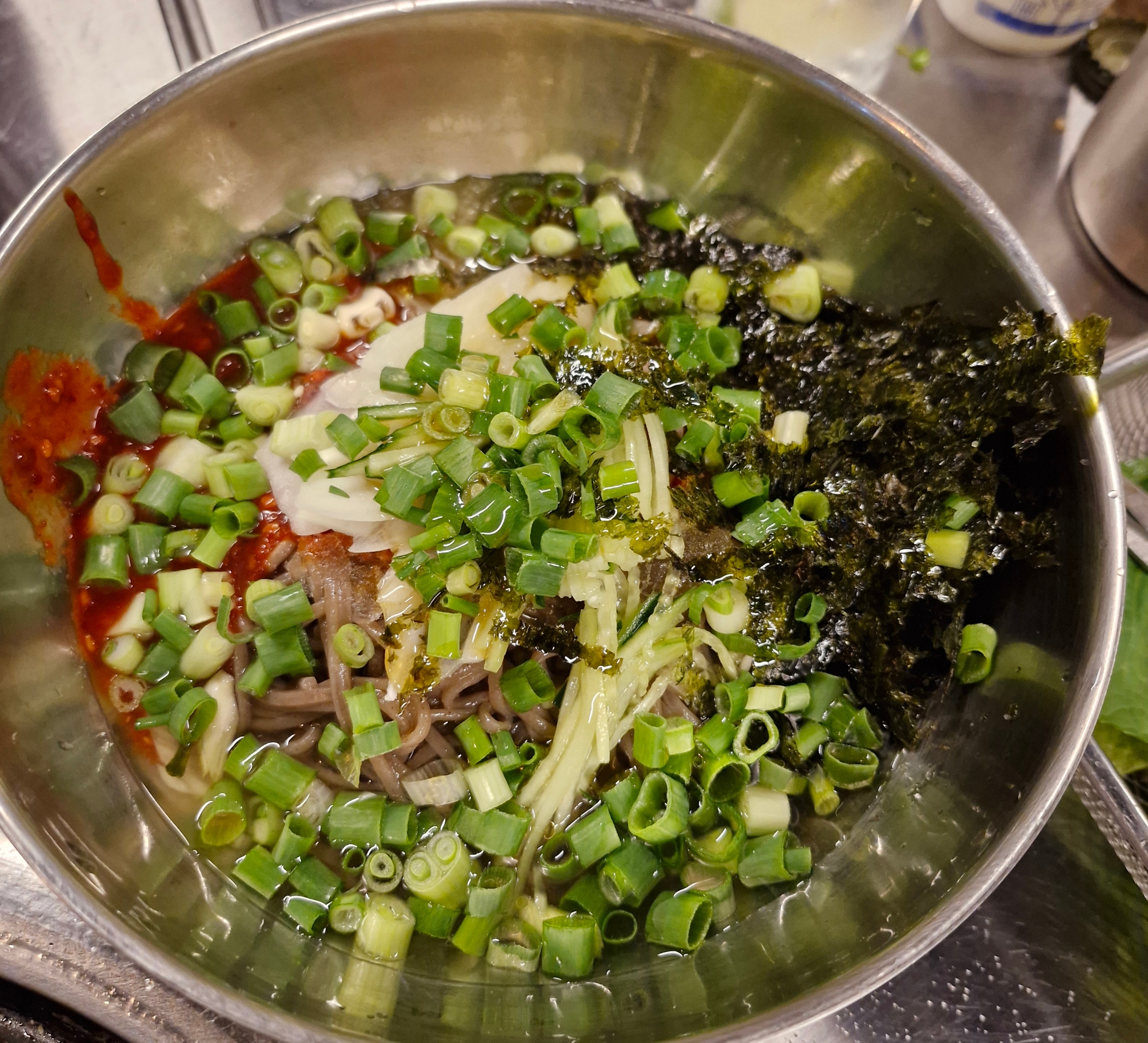원래 라면을 먹고 싶었는데, 부일막창에 라면 메뉴가 없어서 막국수를 주문했습니다