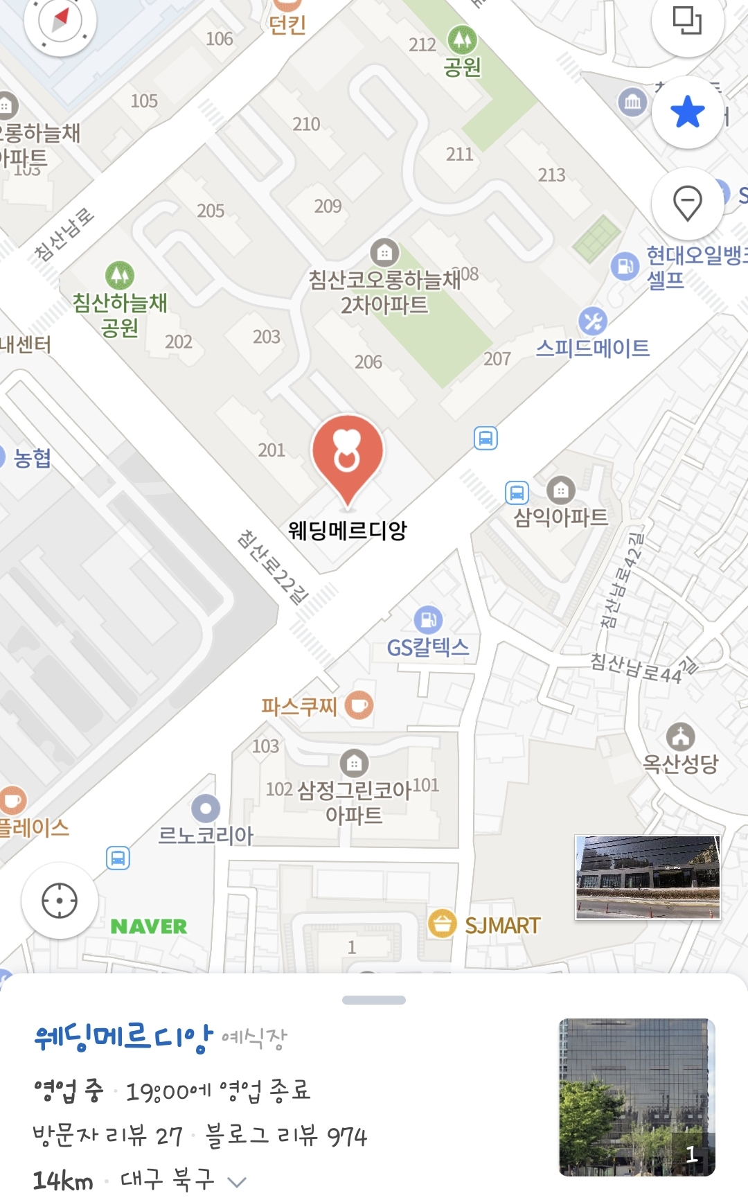 최근 결혼식 참석을 위해 대구 북구 예식장 '웨딩메르디앙'을 방문했습니다