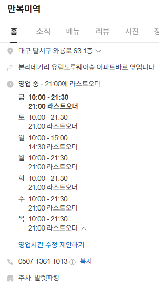 대구 달서구 본동 본리동 맛집 만복미역의 영업시간입니다
