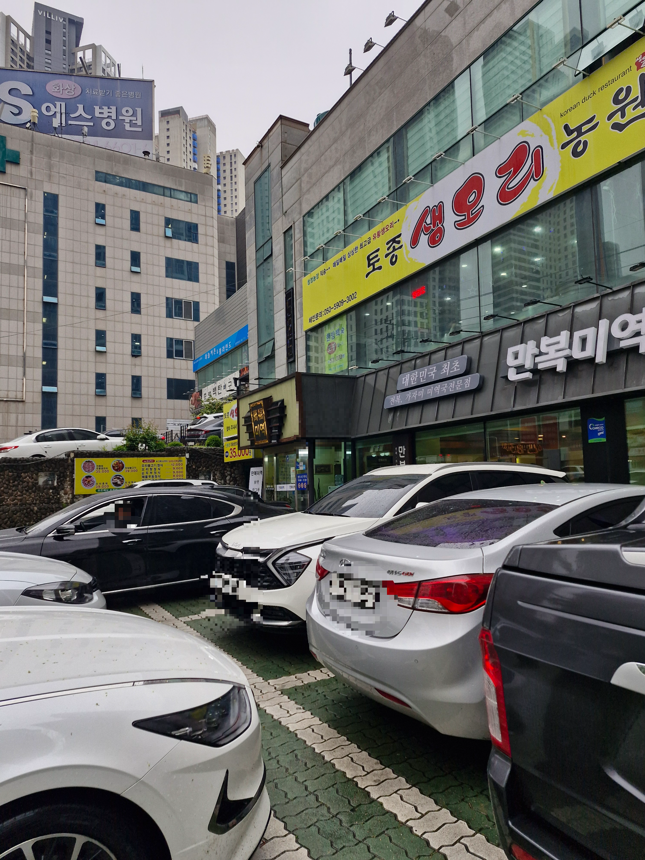 죽전역 만복미역은 차를 이중으로 꽉꽉 채워 주차합니다