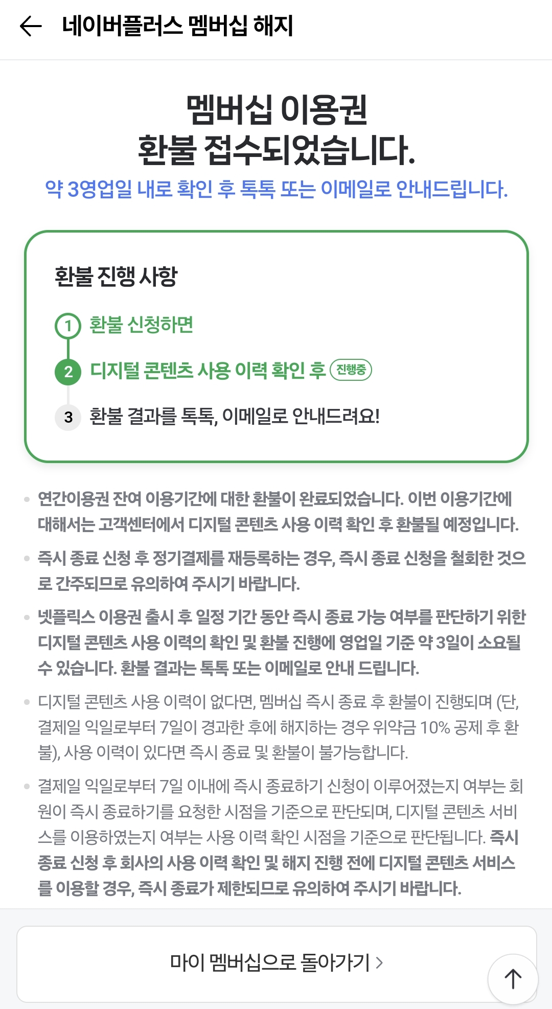 네이버플러스 연간이용권 해지 후 전액환불 방법, 과정 공유(디지털콘텐츠 넷플릭스 이용할 경우)