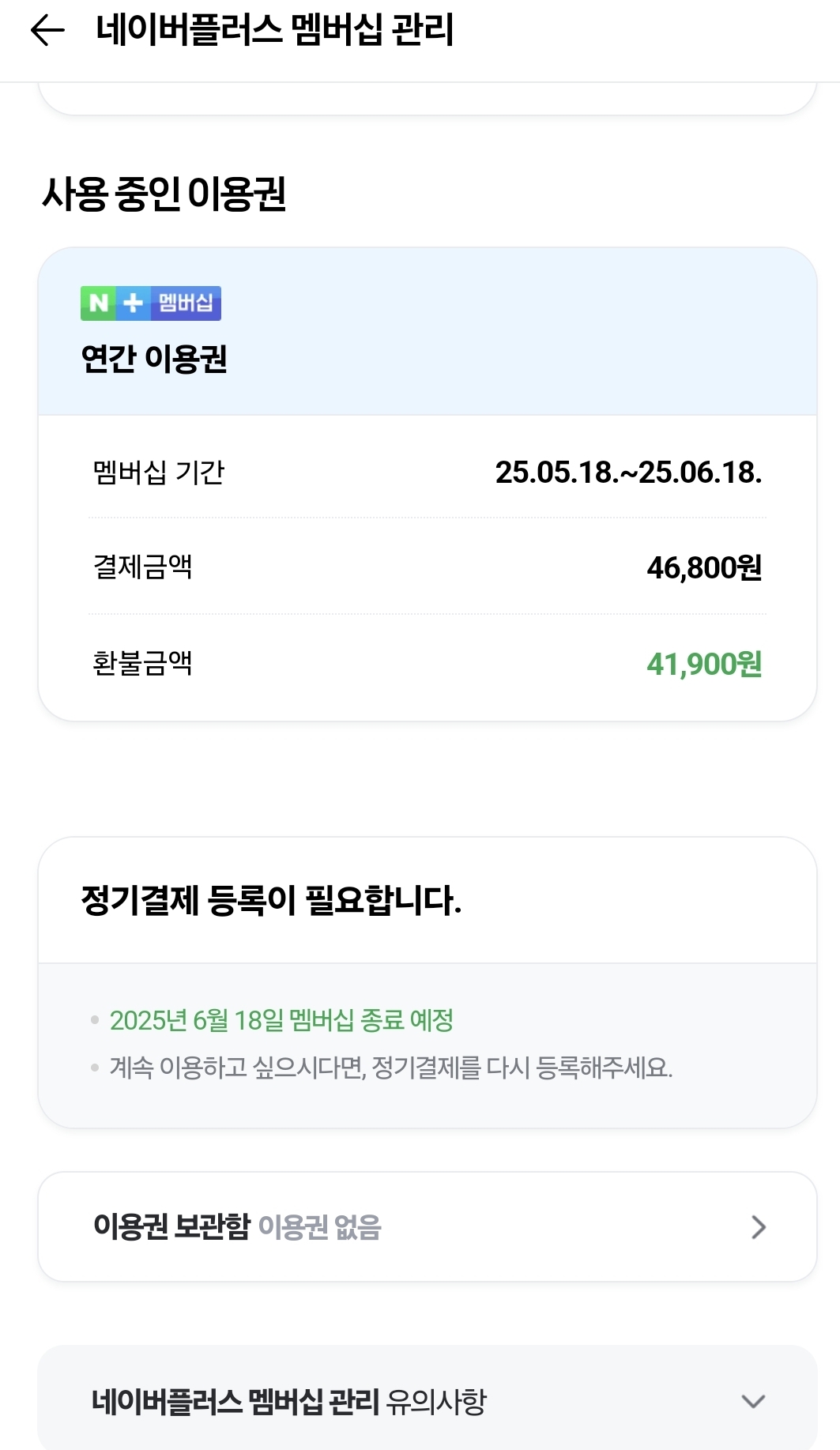 난 분명 연간이용권 해지를 했는데, 계속 한 달치 네이버플러스를 이용하고 있는 것으로 나옵니다